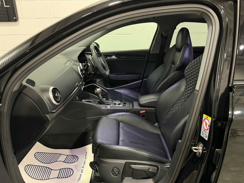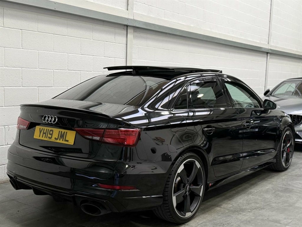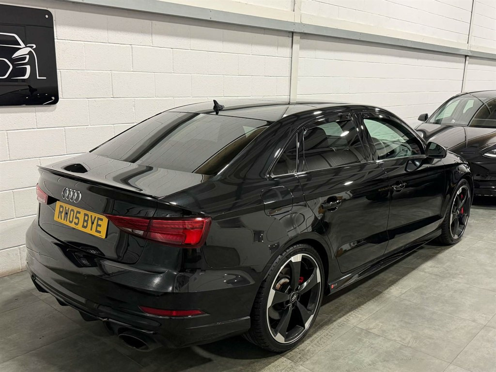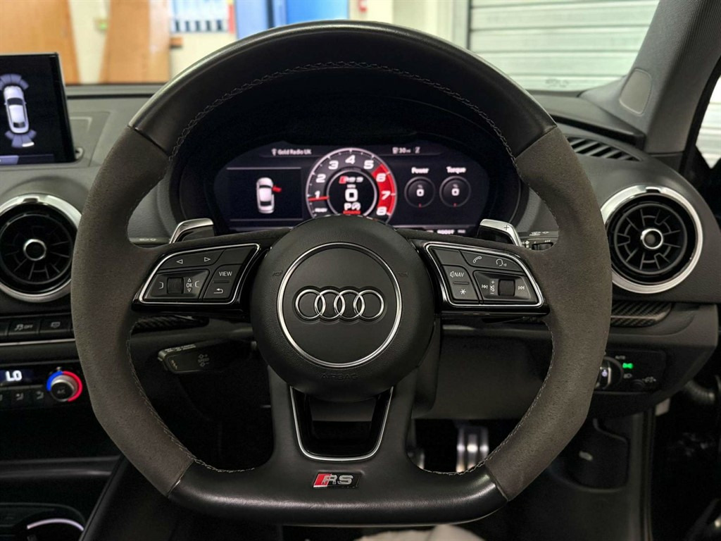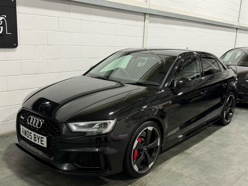 Full Service History, Sat Nav, Black Pack, Pan Roof, Supersport Seats, Sports Exhaust, Rear View Camera, Bang And Olufsen Sound System, Storage Package,Tyre Repair Kit,Tyre Pressure Warning Light,Tool Kit,Storage Compartments in the Door Side Trims-Centre Console-Under Front Passenger Seat,Seats - Split Folding Rear - 60-40,Seat Belt Monitoring,Remote Central Locking with 2 Fold Away Keys,Rear Diffuser Insert in Gloss Black,Radiator Grille Frame - Matt Aluminium look,Radiator Grille - Honeycomb Design in Gloss Black,RS3 Badge on Grille and on Luggage Compartment Lid,RS Sports Suspension,RS Sports Exhaust System,RS Gear Lever Knob in Alcantara with Leather Gaiter with Contrast Stitching,RS Flat Bottomed 3 Spoke Leather Multi-function Sport Steering Wheel with Alcantara Inserts and Gear Shift Paddles in Aluminium Look - Contrast Stitching and RS Badging,Audi Sound System,Dual-Zone Electronic Climate Control,Door Mirrors - Electrically Adjustable and Heated with Integrated LED Side Indicators,DAB Digital Radio,Cruise Control,CD Drive,Brake Calipers Painted in Black with RS Logo at the Front,Bluetooth Interface,Black Styling Package,Black Door Mirrors,Auto-Dimming Rear-View Mirror,Audi Virtual Cockpit with RS Specific Display,ESC - Electronic Stabilisation Control inc ABS - ASR and EDL,Audi Smartphone Interface,Audi Phone Box with Wireless Charging,Audi Parking System Plus,Audi Hill Hold Assist,Audi Drive Select,Audi Connect Infotainment Services (36 Month Subscription From New),Anti-Theft Alarm,Anti Theft Locking Wheel Bolts,Aluminium Interior Elements,6-Airbag System with Knee Airbag for Driver,2 x USB Charging Ports and 1 x AUX-IN,Interior Light Package,RS Dual-branch Exhaust System with Two Oval Tailpipe Trims,RS Brake System,Progressive Steering,Privacy Glass,Pedals - Brushed Stainless Steel,Panoramic Glass Sunroof,Manual Seat Adjustment,MMI Navigation Plus including MMI Touch,Light and Rain Sensor,LED Interior Light Package,LED Headlights with LED Rear Lights and Dynamic Rear Indicators,19in Alloy Wheels - 5-Arm Rotor Design Audi Sport - Gloss Anthracite Black - Diamond Cut Finish,Inlays - Carbon,Illuminated Door Sill Trims with RS Logo,ISOFIX Child Seat Mounting and Top Tether,Heated Front Seats,Headlights Washers,Front Centre Armrest,Flared Front Wheel Arches,First Aid Kit and Warning Triangle,Extended Side Sills in Body Colour,Electric Windows - Front and Rear,Body Coloured Door Mirrors,Brake Calipers Painted in Red with RS Logo at the Front,Door Mirrors - Heated-Electrically Adjustable-Folding-Auto-Dimming,Comfort and Sound Package,Panther Black,Driver Assistance Package,Fine Nappa Leather with Rhombus Pattern - RS Sport Seats with RS Embossed Logo - Black-Rock Grey Stitching
