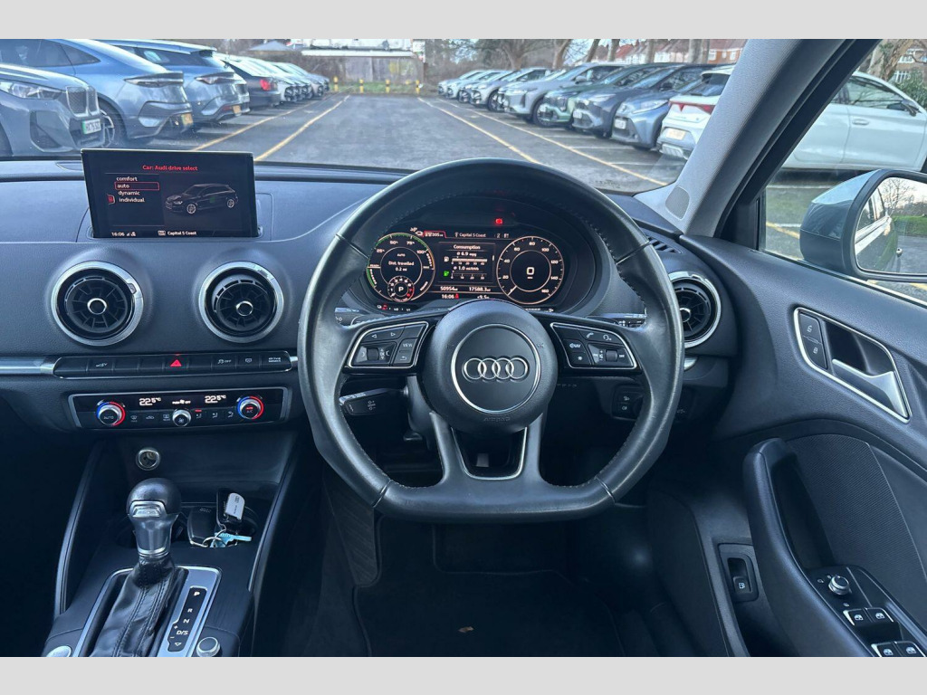 This Audi A3 e-tron stands out with its advanced features, demonstrating a higher specification than many comparable vehicles. The combination of its plug in hybrid powertrain, comprehensive service record, and long MOT period provides peace of mind for its next owner. A 3 month warranty is also included, further adding to the value of this well maintained and feature rich Audi A3. 17in Alloy Wheels - 5-Arm Design, 2 x USB Charging Ports and 1 x AUX-IN, 6-Airbag System with Knee Airbag for Driver, 8 Passive Loudspeakers, Advanced Key, Aluminium Interior Elements, Aluminium Window Trims, Anti Theft Locking Wheel Bolts, Anti-Theft Alarm, Audi Active Lane Assist, Audi Drive Select, Audi Pre-Sense Front with Pedestrian Recognition, Audi Smartphone Interface, Auto-Dimming Rear-View Mirror, Body Coloured Door Mirrors, Brake Recuperation, CD Drive, Charging Cables, Chrome-Plated Exhaust Tailpipe Trim, Colour Drivers Information System - DIS, Cruise Control, DAB Digital Radio, Door Mirrors - Electrically Adjustable and Heated with Integrated LED Side Indicators, Door Sill Trims with Aluminium Inlay, Door Sill Trims with Aluminium Inlay and E-Tron Logo, Dual-Zone Electronic Climate Control, Dynamic Suspension, E-Tron Badging - Front Wing - Front Grille, ESC - Electronic Stabilisation Control inc ABS - ASR and EDL, EV Button, Electric Windows - Front, Electromechanical Power Steering, Email and Text Messages can be Displayed on your Vehicles MMI, First Aid Kit and Warning Triangle, Front Centre Armrest, Headlights - High-Beam Assist, Hill Hold Assist, ISOFIX Child Seat Mounting and Top Tether, Illuminated Vanity Mirrors, Inlays - Aluminium Mistral Silver, Interior Lighting, Lashing Points in Luggage Compartment, Light and Rain Sensor, MMI Radio Plus with 7in Electrically Retractable Colour MMI Screen, Manual Seat Adjustment, Online Media Streaming, Radiator Grille - Matt Black, Rear Parking Sensors, Remote Central Locking, Roof Spoiler - Painted in Body Colour with Aerodynamic Inserts in High-Gloss Black at the Side, Seat Belt Monitoring, Split Folding Rear Seat Bench - 60-40 or Fully, Sport Side Air Inlet Grille and Diffuser Insert, Steering Wheel - Flat-Bottomed 3-Spoke Leather Multi-Function Sport with Gear Shift Paddles, Storage Compartments in the Door Side Trims-Centre Console-Under Drivers Seat, Storage Package, Technology Package, Tool Kit, Tyre Pressure Warning Light, Tyre Repair Kit, Vehicle Charging Socket, Voice Control System, Xenon Headlights with LED Daytime Running Lights