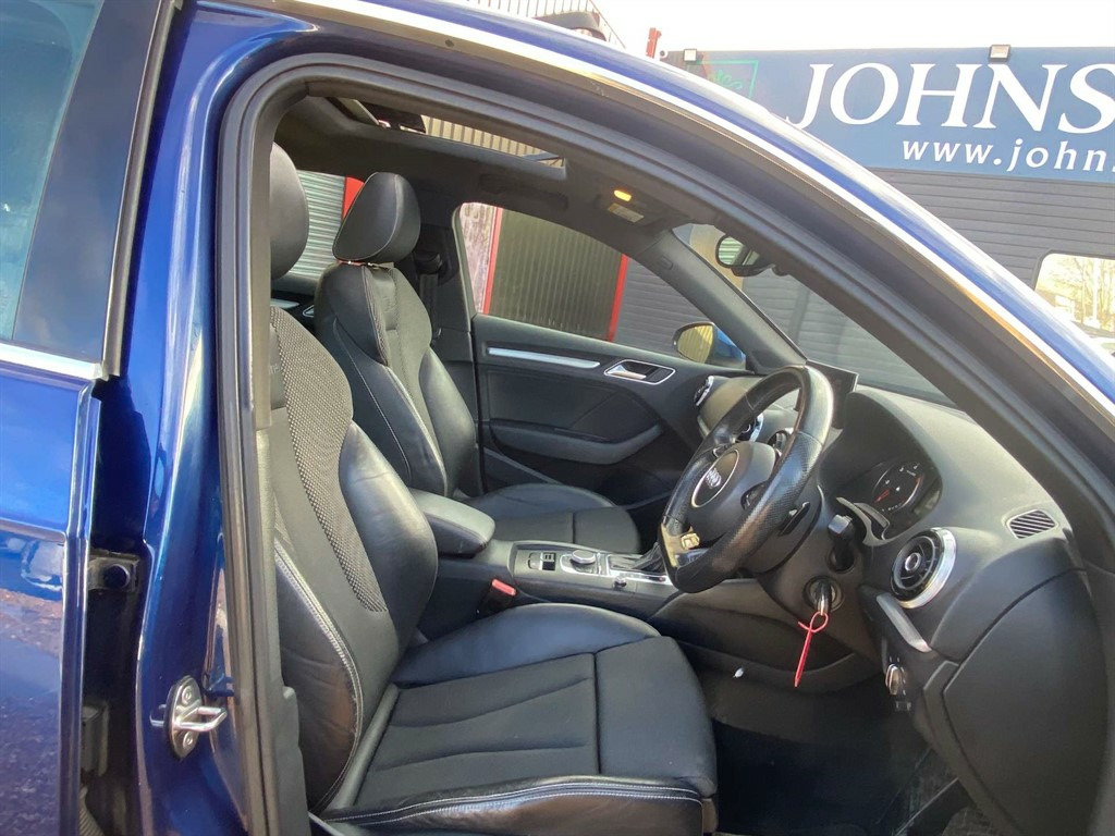 Introducing the Audi A3 2.0 A3 Sportback S Line TDI Semi-Auto 5dr – a masterpiece of engineering and style that promises to elevate your driving experience. This stunning vehicle, finished in a captivating shade of blue, is not just a car; it's a statement of sophistication and performance. A STUNNING LOOKING EXAMPLE AUDI A3 2.0 TDI S LINE 5DR S TRONIC IN BLUE, 1 FORMER KEEPER, SERVICE HISTORY, PANORAMIC ROOF, £35 ROAD TAX FOR THE YEAR, CURRENT MOT NO ADVISORIES, HALF LEATHER SEATS, BLUETOOTH, CRUISE CONTROL, DAB RADIO, PRIVACY GLASS, SAT NAV, SPARE WHEEL, AUTOMATIC, Service History 25/09/2015 @ 7685 10/10/2023 @ 66244 25/09/2024 @ 81837 02/12/2025 @95207 With only two previous owners, this Audi A3 has been meticulously maintained, ensuring it remains in pristine condition. Its sleek and dynamic design is complemented by the S Line trim, which adds an extra touch of sportiness and elegance to its already impressive profile. Under the bonnet, the 2.0 TDI engine delivers a perfect balance of power and efficiency, making every journey a pleasure. The semi-automatic transmission offers seamless gear changes, providing a smooth and responsive drive that adapts effortlessly to your needs. Step inside, and you'll be greeted by a luxurious interior that combines comfort with cutting-edge technology. The spacious Sportback design ensures ample room for passengers and luggage, making it ideal for both city commutes and weekend getaways. Whether you're navigating urban streets or cruising on the open road, the Audi A3 offers an unparalleled driving experience. Its advanced safety features and intuitive infotainment system keep you connected and secure, while the premium materials and attention to detail create an atmosphere of refined luxury. Don't miss the opportunity to own this exceptional Audi A3. It's more than just a car; it's a lifestyle choice that reflects your taste for quality and performance. Visit us today to experience the allure of the Audi A3 for yourself. Your dream drive awaits.