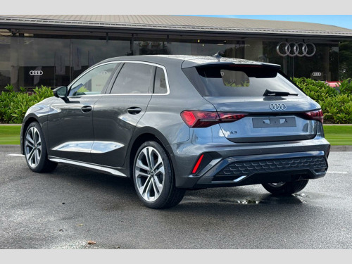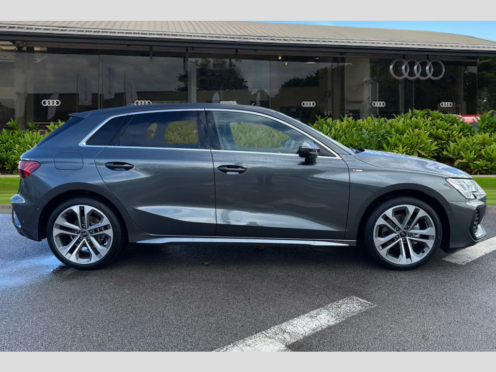 ℹ️Vehicle price shown includes a deposit contribution of £4100 when purchased on finance by 31/12/2025. Solutions Personal Contract Plan. 8.9% APR Representative. Audi Financial Services. Terms and Conditions apply. 12v Socket and Storage Compartment in Front Centre Console, 18in Alloy Wheels - 5-Twin Spoke Design - Graphite Grey - Gloss Turned, 3-Zone Deluxe Automatic Air Conditioning, 4-Way Lumbar Support for Front Seats, Airbags - Driver and Front Passenger with Passenger Airbag Deactivation, Aluminium Interior Elements, Aluminium Window Trims, Anti Theft Locking Wheel Bolts, Anti-Theft Alarm, Audi Connect Navigation and Infotainment Services Plus (3 Year Subscription From New), Audi Drive Select, Audi Phone Box Light with Wireless Charging, Audi Pre-Sense Front with Pedestrian and Cyclist Recognition, Audi Smartphone Interface, Audi Sound System, Audi Virtual Cockpit Plus, Auto Dimming and Frameless Rear View Mirror, Automatic Start-Stop System with Recuperation, Body Coloured Door Mirrors, Camera Based Traffic Sign Recognition, Cloth Headlining in Black, Collision Avoidance Assistant, Cruise Control, DAB Digital Radio, Distraction and Fatigue Warning, ESC - Electronic Stabilisation Control inc ABS - ASR and EDL, Electromechanical Power Steering, Electronically Operated Child Locks, Emergency Call - E-Call, Exterior Mirrors - Electrically Adjustable - Heated and Folding - Automatically Dimming on Both Sides with Built-In LED Side Indicators - Including Automatic Kerb-Side Function for the Passenger-Side, First Aid Kit and Warning Triangle and 2 Safety Vests, Flat-Bottomed 3-Spoke Leather Multi-Function Sports Steering Wheel, Front Side Airbags with Head Airbags and Interaction Airbag, Front Sports Seats, Front and Rear Centre Armrest in Artificial Leather, Front and Rear Floor Mats, Heated Front Seats, Hill Hold Assist, I-Size and Top Tether Child Seat Mounting for the Outer Rear Seats, Illuminated Door Sill Trims with Aluminium Inserts and S Logo, Inlays - Dark Spectrum Aluminium, LED Headlights with LED Rear Lights and Dynamic Rear Indicators, Lane Departure Warning, Light and Rain Sensor, MMI Navigation Plus with High Resolution 10.1in Touchscreen Colour Display, Manual Boot Compartment Lid, Model Badging - Exterior, Multi-Coloured Extended LED Interior Light Pack, Park Assist Pack with Park Assist Plus, Pedals in Stainless Steel and Footrest in Black, Privacy Glass, Remote Central Locking with Safelock, S Line Bumpers, S Line Styling, S Roof Spoiler, Seat Belt Monitoring, Speed Limiter - Adjustable, Split-Folding Rear Seat Backrest - 40-20-40 Split or Fully Collapsable, Sport Suspension, Steering Wheel - S Badging, Tool Kit, Tyre Pressure Loss Indicator, Tyre Repair Kit, USB Ports with Charging Function in Rear, Windscreen with Heat Insulating and Acoustic Glazing