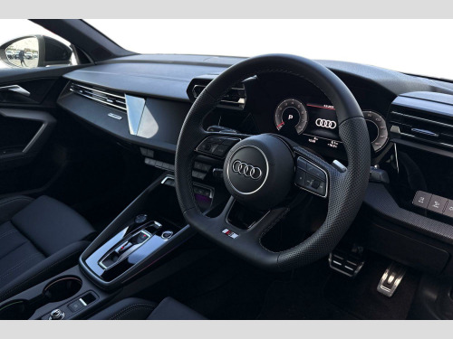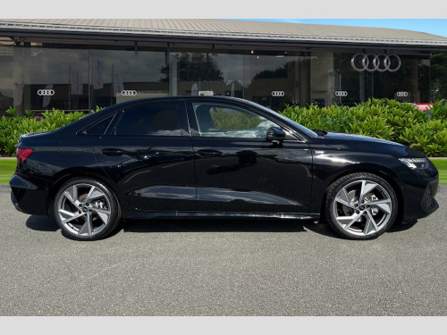 Inside, the cabin is a haven of comfort and technology. Prepare for chilly mornings with the luxury of heated front seats, ensuring a warm start to every journey. For effortless motorway cruising, the integrated cruise control system allows you to maintain a steady speed with ease, reducing driver fatigue. Staying connected and entertained is seamless with the Audi smartphone interface, which effortlessly integrates with your mobile devices via Apple CarPlay and Android Auto. This feature ensures you have easy and safe access to your navigation, music, and contacts on the go. This Audi A3 Black Edition is an exceptional blend of sharp design, practical efficiency, and high-end features, offering a truly premium driving experience.Price shown includes a deposit contribution of £3475 when purchased on finance by 31/12/25. Solutions Personal Contract Plan. 8.9% APR Representative. Audi Financial Services. Terms and Conditions apply. 12v Socket and Storage Compartment in Front Centre Console, 19in Alloy Wheels - 5-Arm Y Design - Matt Grey - Gloss Turned, 3-Zone Deluxe Automatic Air Conditioning, 4-Way Lumbar Support for Front Seats, Adaptive Cruise Control, Airbags - Driver and Front Passenger with Passenger Airbag Deactivation, Aluminium Interior Elements, Aluminium Window Trims, Anti Theft Locking Wheel Bolts, Anti-Theft Alarm, Attention and Fatigue Detection, Audi Beam, Audi Connect Navigation and Infotainment Services Plus (3 Year Subscription From New), Audi Drive Select, Audi Phone Box Light with Wireless Charging, Audi Pre-Sense Front with Pedestrian and Cyclist Recognition, Audi Smartphone Interface, Audi Sound System, Audi Virtual Cockpit Plus, Auto Dimming and Frameless Rear View Mirror, Automatic Start-Stop System with Recuperation, Black Styling Pack, Camera Based Traffic Sign Recognition, Cloth Headlining in Black, Collision Avoidance Assistant, DAB Digital Radio, ESC - Electronic Stabilisation Control inc ABS - ASR and EDL, Electromechanical Power Steering, Electronically Operated Child Locks, Emergency Call - E-Call, Exterior Mirrors - Electrically Adjustable - Heated and Folding - Automatically Dimming on Both Sides with Built-In LED Side Indicators - Including Automatic Kerb-Side Function for the Passenger-Side, First Aid Kit and Warning Triangle and 2 Safety Vests, Flat-Bottomed 3-Spoke Leather Multi-Function Sports Steering Wheel with Gear-Shift Paddles, Front Side Airbags with Head Airbags and Interaction Airbag, Front Sports Seats, Front and Rear Centre Armrest in Artificial Leather, Front and Rear Floor Mats, Heated Front Seats, Hill Hold Assist, I-Size and Top Tether Child Seat Mounting for the Outer Rear Seats, Illuminated Door Sill Trims with Aluminium Inserts and S Logo, Inlays - Black Impressum Woven Textile, Intersection Assist, LED Headlights with LED Rear Lights and Dynamic Rear Indicators, Lane Departure Warning, Light and Rain Sensor, MMI Navigation Plus with High Resolution 10.1in Touchscreen Colour Display, Manual Boot Compartment Lid, Model Badging - Exterior, Multi-Coloured Extended LED Interior Light Pack, Park Assist with Parking System Plus, Pedals in Stainless Steel and Footrest in Black, Privacy Glass, Rear-View Camera, Remote Central Locking with Safelock, Seat Belt Monitoring, Speed Limiter - Adjustable, Split-Folding Rear Seat Backrest - 40-20-40 Split or Fully Collapsable, Sport Suspension, Tool Kit, Tyre Pressure Loss Indicator, Tyre Repair Kit, USB Ports with Charging Function in Rear, Windscreen with Heat Insulating and Acoustic Glazing