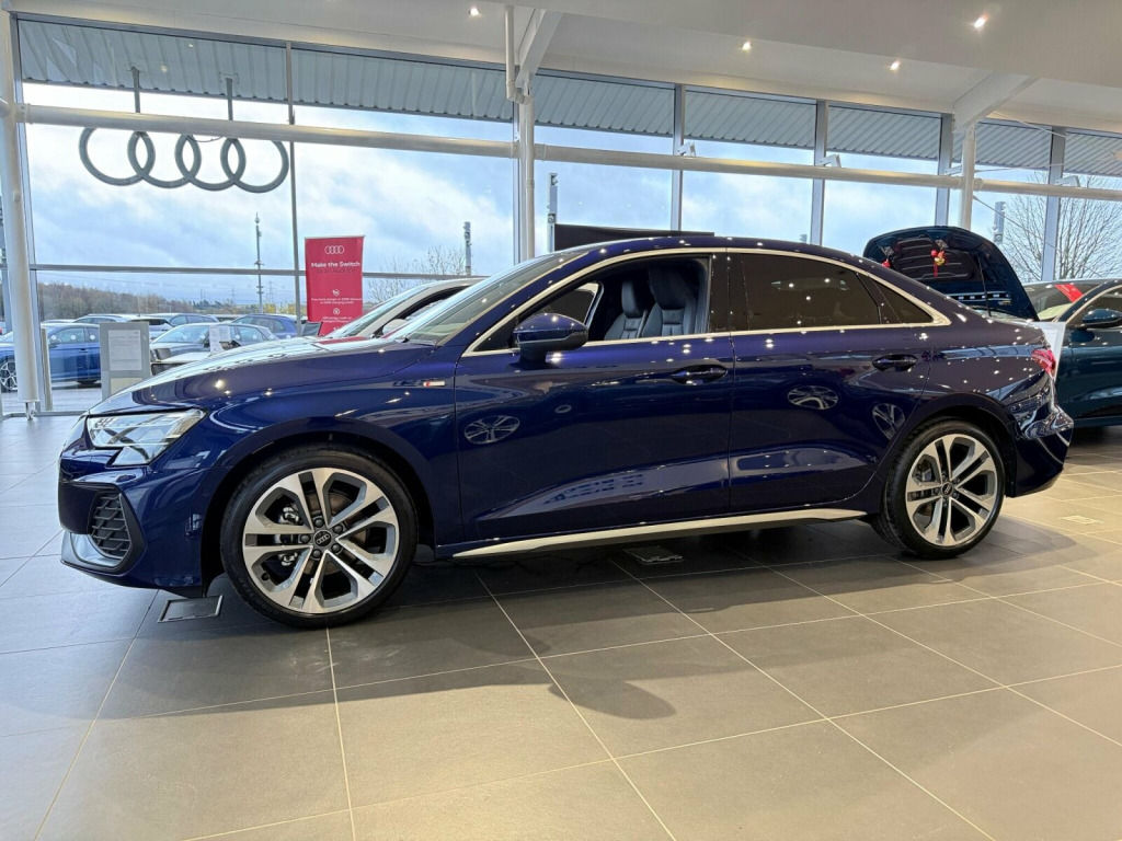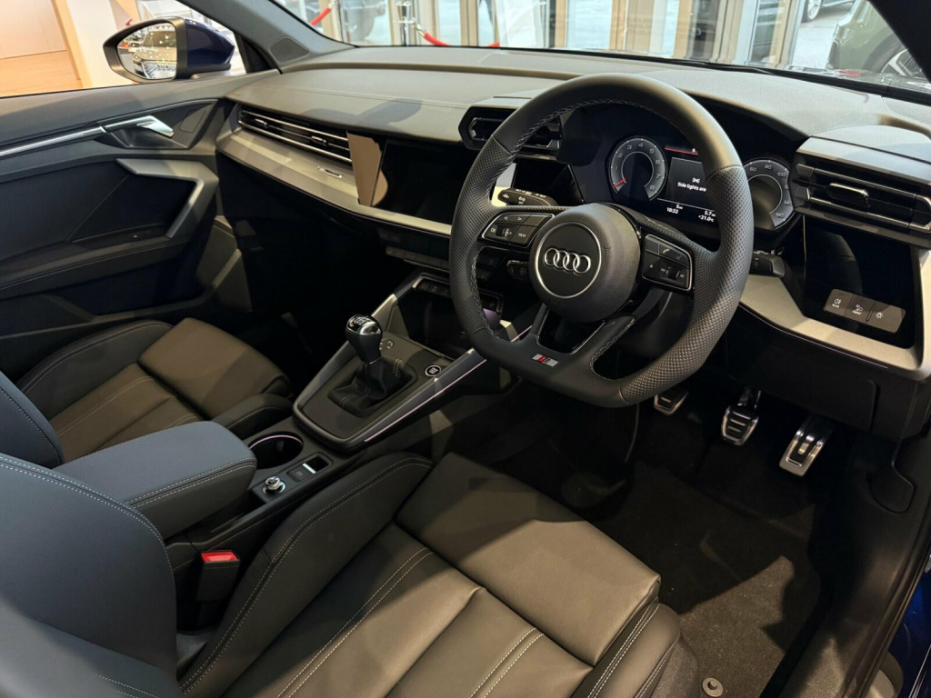 ℹ️Vehicle price shown includes a deposit contribution of £4100 when purchased on finance by 31/12/2025. Solutions Personal Contract Plan. 8.9% APR Representative. Audi Financial Services. Terms and Conditions apply. 12v Socket and Storage Compartment in Front Centre Console, 18in Alloy Wheels - 5-Twin Spoke Design - Graphite Grey - Gloss Turned, 3-Zone Deluxe Automatic Air Conditioning, 4-Way Lumbar Support for Front Seats, Airbags - Driver and Front Passenger with Passenger Airbag Deactivation, Aluminium Interior Elements, Aluminium Window Trims, Anti Theft Locking Wheel Bolts, Anti-Theft Alarm, Audi Connect Navigation and Infotainment Services Plus (3 Year Subscription From New), Audi Drive Select, Audi Phone Box Light with Wireless Charging, Audi Pre-Sense Front with Pedestrian and Cyclist Recognition, Audi Smartphone Interface, Audi Sound System, Audi Virtual Cockpit Plus, Auto Dimming and Frameless Rear View Mirror, Automatic Start-Stop System with Recuperation, Body Coloured Door Mirrors, Camera Based Traffic Sign Recognition, Cloth Headlining in Black, Collision Avoidance Assistant, Cruise Control, DAB Digital Radio, Distraction and Fatigue Warning, ESC - Electronic Stabilisation Control inc ABS - ASR and EDL, Electromechanical Power Steering, Electronically Operated Child Locks, Emergency Call - E-Call, Exterior Mirrors - Electrically Adjustable - Heated and Folding - Automatically Dimming on Both Sides with Built-In LED Side Indicators - Including Automatic Kerb-Side Function for the Passenger-Side, First Aid Kit and Warning Triangle and 2 Safety Vests, Flat-Bottomed 3-Spoke Leather Multi-Function Sports Steering Wheel, Front Side Airbags with Head Airbags and Interaction Airbag, Front Sports Seats, Front and Rear Centre Armrest in Artificial Leather, Front and Rear Floor Mats, Heated Front Seats, Hill Hold Assist, I-Size and Top Tether Child Seat Mounting for the Outer Rear Seats, Illuminated Door Sill Trims with Aluminium Inserts and S Logo, Inlays - Dark Spectrum Aluminium, LED Headlights with LED Rear Lights and Dynamic Rear Indicators, Lane Departure Warning, Light and Rain Sensor, MMI Navigation Plus with High Resolution 10.1in Touchscreen Colour Display, Manual Boot Compartment Lid, Model Badging - Exterior, Multi-Coloured Extended LED Interior Light Pack, Park Assist Pack with Park Assist Plus, Pedals in Stainless Steel and Footrest in Black, Privacy Glass, Remote Central Locking with Safelock, S Line Bumpers, S Line Styling, Seat Belt Monitoring, Speed Limiter - Adjustable, Split-Folding Rear Seat Backrest - 40-20-40 Split or Fully Collapsable, Sport Suspension, Steering Wheel - S Badging, Tool Kit, Tyre Pressure Loss Indicator, Tyre Repair Kit, USB Ports with Charging Function in Rear, Windscreen with Heat Insulating and Acoustic Glazing