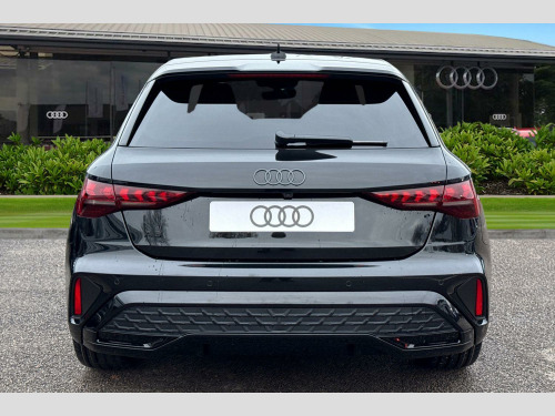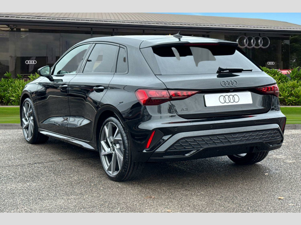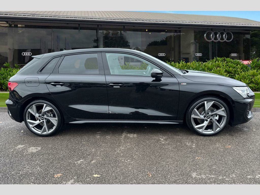 Take a look at this Brand-New Audi A3 Sportback Black Edition in Mythos Black with its 19" 5-Y-arm matt grey alloy wheels which look superb out on the roads. The LED headlights with LED rear lights create that strong visibility in all weather conditions.