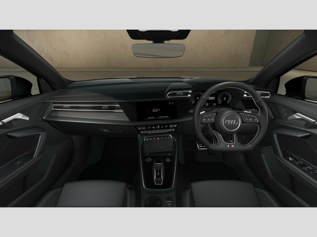 Price shown includes a deposit contribution of £3475 when purchased on finance by 31/12/25. Solutions Personal Contract Plan. 8.9% APR Representative. Audi Financial Services. Terms and Conditions apply. 12v Socket and Storage Compartment in Front Centre Console, 18in Alloy Wheels - 5-Twin Spoke Design - Graphite Grey - Gloss Turned, 3-Zone Deluxe Automatic Air Conditioning, 4-Way Lumbar Support for Front Seats, Adaptive Cruise Control, Airbags - Driver and Front Passenger with Passenger Airbag Deactivation, Aluminium Interior Elements, Aluminium Window Trims, Anti Theft Locking Wheel Bolts, Anti-Theft Alarm, Attention and Fatigue Detection, Audi Connect Navigation and Infotainment Services Plus (3 Year Subscription From New), Audi Drive Select, Audi Phone Box Light with Wireless Charging, Audi Pre-Sense Front with Pedestrian and Cyclist Recognition, Audi Smartphone Interface, Audi Sound System, Audi Virtual Cockpit Plus, Auto Dimming and Frameless Rear View Mirror, Automatic Start-Stop System with Recuperation, Body Coloured Door Mirrors, Camera Based Traffic Sign Recognition, Cloth Headlining in Black, Collision Avoidance Assistant, DAB Digital Radio, ESC - Electronic Stabilisation Control inc ABS - ASR and EDL, Electromechanical Power Steering, Electronically Operated Child Locks, Emergency Call - E-Call, Exterior Mirrors - Electrically Adjustable - Heated and Folding - Automatically Dimming on Both Sides with Built-In LED Side Indicators - Including Automatic Kerb-Side Function for the Passenger-Side, First Aid Kit and Warning Triangle and 2 Safety Vests, Flat-Bottomed 3-Spoke Leather Multi-Function Sports Steering Wheel with Gear-Shift Paddles, Front Side Airbags with Head Airbags and Interaction Airbag, Front Sports Seats, Front and Rear Centre Armrest in Artificial Leather, Front and Rear Floor Mats, Heated Front Seats, Hill Hold Assist, I-Size and Top Tether Child Seat Mounting for the Outer Rear Seats, Illuminated Door Sill Trims with Aluminium Inserts and S Logo, Inlays - Dark Spectrum Aluminium, Intersection Assist, LED Headlights with LED Rear Lights and Dynamic Rear Indicators, Lane Departure Warning, Light and Rain Sensor, MMI Navigation Plus with High Resolution 10.1in Touchscreen Colour Display, Manual Boot Compartment Lid, Model Badging - Exterior, Multi-Coloured Extended LED Interior Light Pack, Park Assist with Parking System Plus, Pedals in Stainless Steel and Footrest in Black, Privacy Glass, Rear-View Camera, Remote Central Locking with Safelock, S Line Bumpers, S Line Styling, S Roof Spoiler, Seat Belt Monitoring, Speed Limiter - Adjustable, Split-Folding Rear Seat Backrest - 40-20-40 Split or Fully Collapsable, Sport Suspension, Steering Wheel - S Badging, Tool Kit, Tyre Pressure Loss Indicator, Tyre Repair Kit, USB Ports with Charging Function in Rear, Windscreen with Heat Insulating and Acoustic Glazing