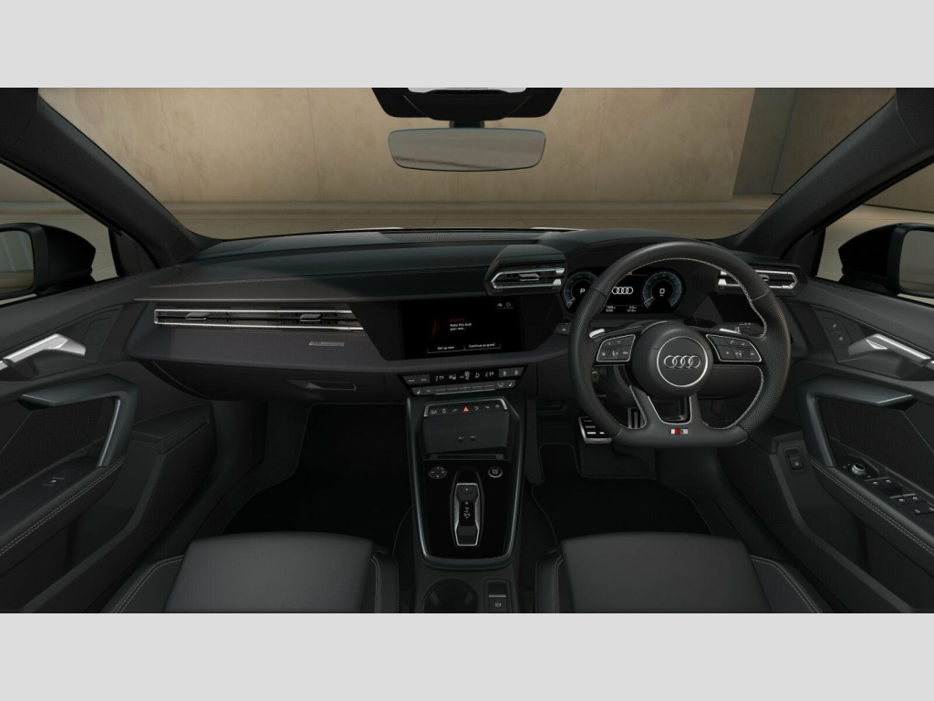 Price shown includes a deposit contribution of £6500 when purchased on finance by 31/03/26. Solutions Personal Contract Plan. 7.9% APR Representative. Audi Financial Services. Terms and Conditions apply. 12v Socket and Storage Compartment in Front Centre Console, 18in Alloy Wheels - 5-Y-Twin-Spoke Design - Black Metallic, 3-Zone Deluxe Automatic Air Conditioning, 4-Way Lumbar Support for Front Seats, Acoustic Vehicle Alerting System - AVAS, Adaptive Cruise Control, Airbags - Driver and Front Passenger with Passenger Airbag Deactivation, Aluminium Interior Elements, Aluminium Window Trims, Anti Theft Locking Wheel Bolts, Anti-Theft Alarm, Attention and Fatigue Detection, Audi Beam, Audi Connect Navigation and Infotainment Services Plus (3 Year Subscription From New), Audi Drive Select, Audi Phone Box Light with Wireless Charging, Audi Pre-Sense Front with Pedestrian and Cyclist Recognition, Audi Smartphone Interface, Audi Sound System, Audi Virtual Cockpit Plus, Auto Dimming and Frameless Rear View Mirror, Automatic Start-Stop System with Recuperation, Black Styling Pack, Camera Based Traffic Sign Recognition, Charging Cable for Public Charging - Mode 3 - 11 kW AC, Cloth Headlining in Black, Collision Avoidance Assistant, Convenience Auxiliary - Air Conditioning, DAB Digital Radio, ESC - Electronic Stabilisation Control inc ABS - ASR and EDL, Electromechanical Power Steering, Electronically Operated Child Locks, Emergency Call - E-Call, Exterior Mirrors - Electrically Adjustable - Heated and Folding - Automatically Dimming on Both Sides with Built-In LED Side Indicators - Including Automatic Kerb-Side Function for the Passenger-Side, First Aid Kit and Warning Triangle and 2 Safety Vests, Flat-Bottomed 3-Spoke Leather Multi-Function Sports Steering Wheel with Gear-Shift Paddles, Front Side Airbags with Head Airbags and Interaction Airbag, Front Sports Seats, Front and Rear Centre Armrest in Artificial Leather, Front and Rear Floor Mats, Heated Front Seats, Hill Hold Assist, I-Size and Top Tether Child Seat Mounting for the Outer Rear Seats, Illuminated Door Sill Trims with Aluminium Inserts and S Logo, Inlays - Black Impressum Woven Textile, Intersection Assist, LED Headlights with LED Rear Lights and Dynamic Rear Indicators, Lane Departure Warning, Light and Rain Sensor, MMI Navigation Plus with High Resolution 10.1in Touchscreen Colour Display, Manual Boot Compartment Lid, Model Badging - Exterior, Multi-Coloured Extended LED Interior Light Pack, Park Assist with Parking System Plus, Pedals in Stainless Steel and Footrest in Black, Privacy Glass, Rear-View Camera, Remote Central Locking with Safelock, S Roof Spoiler, Seat Belt Monitoring, Speed Limiter - Adjustable, Split-Folding Rear Seat Backrest - 40-20-40 Split or Fully Collapsable, Standard Suspension, Tool Kit, Type 2 Socket for AC Charging, Tyre Pressure Loss Indicator, Tyre Repair Kit, USB Ports with Charging Function in Rear, Windscreen with Heat Insulating and Acoustic Glazing