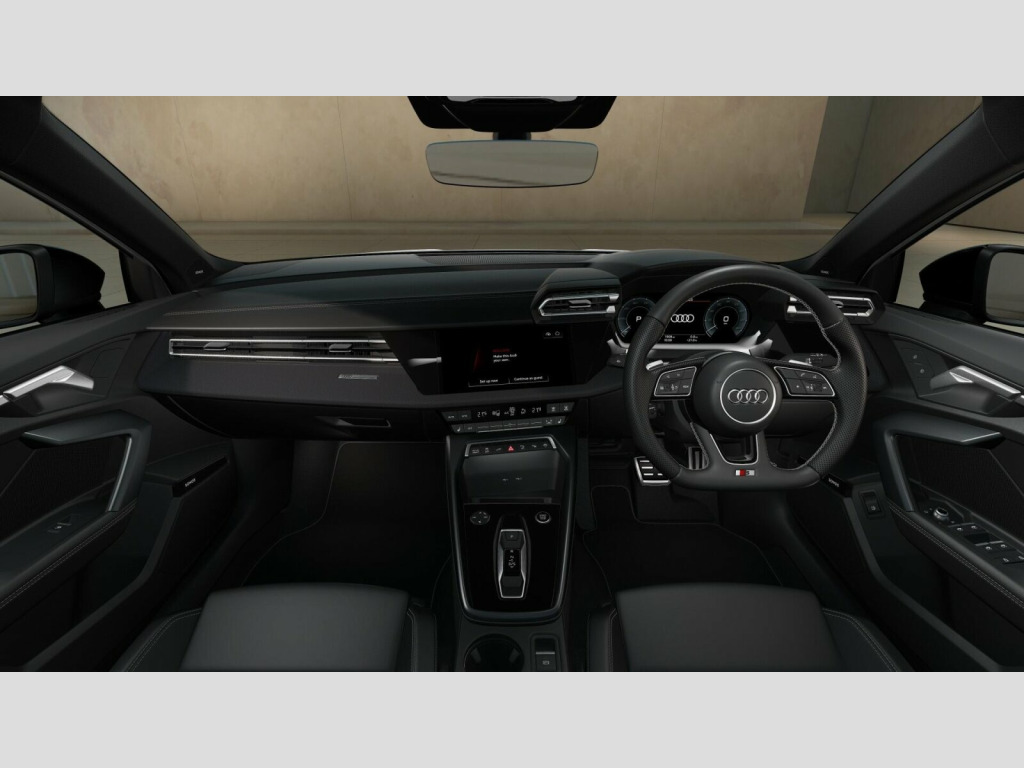 Price shown includes a deposit contribution of £6500 when purchased on finance by 31/03/26. Solutions Personal Contract Plan. 7.9% APR Representative. Audi Financial Services. Terms and Conditions apply. Technology Pack, 12v Socket and Storage Compartment in Front Centre Console, 18in Alloy Wheels - 5-Y-Twin-Spoke Design - Black Metallic, 3-Zone Deluxe Automatic Air Conditioning, 4-Way Lumbar Support for Front Seats, Acoustic Vehicle Alerting System - AVAS, Adaptive Cruise Control, Airbags - Driver and Front Passenger with Passenger Airbag Deactivation, Aluminium Interior Elements, Aluminium Window Trims, Anti Theft Locking Wheel Bolts, Anti-Theft Alarm, Attention and Fatigue Detection, Audi Beam, Audi Connect Navigation and Infotainment Services Plus (3 Year Subscription From New), Audi Drive Select, Audi Phone Box Light with Wireless Charging, Audi Pre-Sense Front with Pedestrian and Cyclist Recognition, Audi Smartphone Interface, Audi Sound System, Audi Virtual Cockpit Plus, Auto Dimming and Frameless Rear View Mirror, Automatic Start-Stop System with Recuperation, Black Styling Pack, Camera Based Traffic Sign Recognition, Charging Cable for Public Charging - Mode 3 - 11 kW AC, Cloth Headlining in Black, Collision Avoidance Assistant, Convenience Auxiliary - Air Conditioning, DAB Digital Radio, ESC - Electronic Stabilisation Control inc ABS - ASR and EDL, Electromechanical Power Steering, Electronically Operated Child Locks, Emergency Call - E-Call, Exterior Mirrors - Electrically Adjustable - Heated and Folding - Automatically Dimming on Both Sides with Built-In LED Side Indicators - Including Automatic Kerb-Side Function for the Passenger-Side, First Aid Kit and Warning Triangle and 2 Safety Vests, Flat-Bottomed 3-Spoke Leather Multi-Function Sports Steering Wheel with Gear-Shift Paddles, Front Side Airbags with Head Airbags and Interaction Airbag, Front Sports Seats, Front and Rear Centre Armrest in Artificial Leather, Front and Rear Floor Mats, Heated Front Seats, Hill Hold Assist, I-Size and Top Tether Child Seat Mounting for the Outer Rear Seats, Illuminated Door Sill Trims with Aluminium Inserts and S Logo, Inlays - Black Impressum Woven Textile, Intersection Assist, LED Headlights with LED Rear Lights and Dynamic Rear Indicators, Lane Departure Warning, Light and Rain Sensor, MMI Navigation Plus with High Resolution 10.1in Touchscreen Colour Display, Manual Boot Compartment Lid, Model Badging - Exterior, Multi-Coloured Extended LED Interior Light Pack, Park Assist with Parking System Plus, Pedals in Stainless Steel and Footrest in Black, Privacy Glass, Rear-View Camera, Remote Central Locking with Safelock, S Roof Spoiler, Seat Belt Monitoring, Speed Limiter - Adjustable, Split-Folding Rear Seat Backrest - 40-20-40 Split or Fully Collapsable, Standard Suspension, Tool Kit, Type 2 Socket for AC Charging, Tyre Pressure Loss Indicator, Tyre Repair Kit, USB Ports with Charging Function in Rear, Windscreen with Heat Insulating and Acoustic Glazing