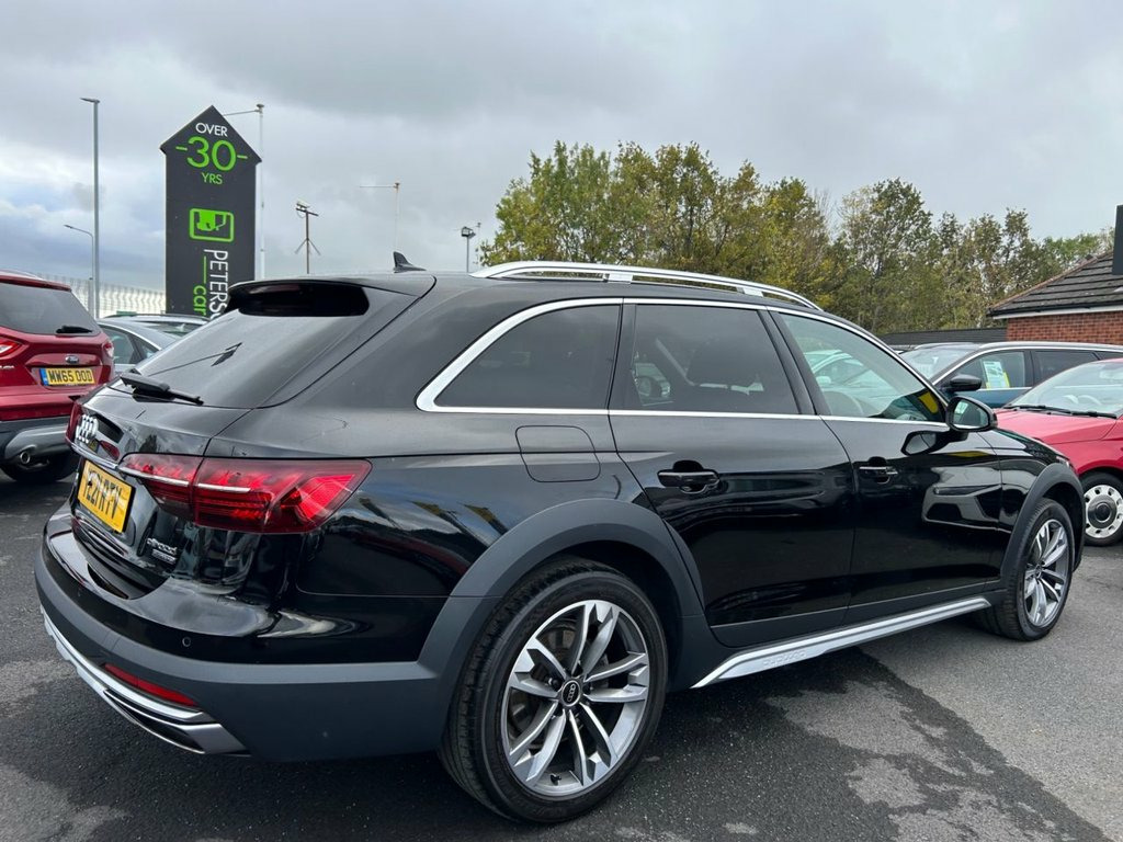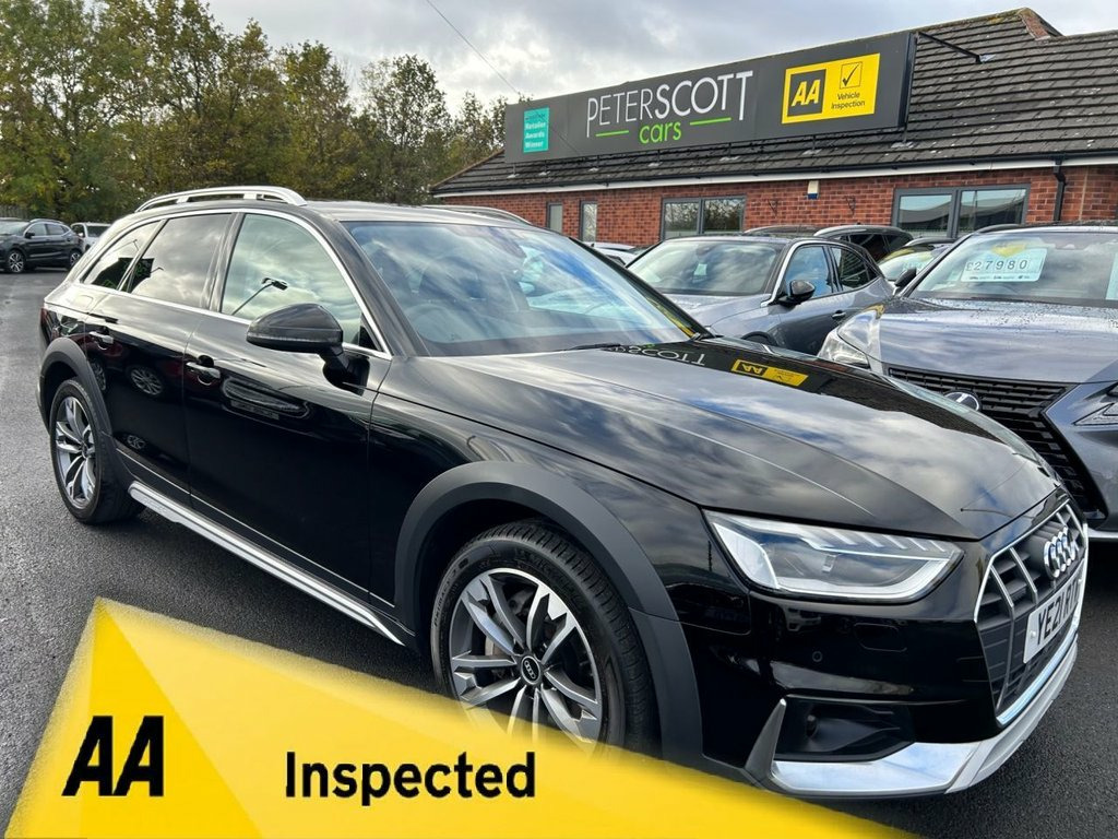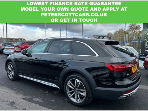 Stunning, high specification Audi A4 Allroad with Satellite navigation, Rear view camera, Virtual cockpit, Full leather interior, Heated front seats, Power opning & closing tailgate, Bluetooth audio and much more. One owner from new. Cared for and maintained to a very high standard with a 5 stamp service history, including all important gearbox oil change at Audi main agent. This A4 AllRoad has been independently inspected by the AA for your added peace of mind. We have uploaded a full Hd walkaround video to show the quality both inside and out of this Audi A4. Visit www.peterscottcars.co.uk, to reserve this car and apply for finance. Low rate finance available. Please ask for a personal quote or use the finance calculators on our website before submitting a full application. All finance can be arranged and signed remotely. Comes with both keys, service history all documentation full clear Gold HPI Report, 128 point AA Inspection Report carried out by AA engineers including a 5 mile test drive before issuing the 'Pass' certificate and the 5 page inspection report. AA History Check Reprt and 12 months AA Breakdown Cover included. Please call or message if you require further information or to make an arrangement to view. 18in Alloy Wheels - 7.5J 5-V Spoke Desig, 2 USB Charging Ports, 3-Spoke Leather High Multifunction Sport, 4-Way Electric Lumbar Support, 6-Airbag System, 8 Passive Loudspeakers, allroad Radiator Grille with Vertical Ch, Anti Theft Locking Wheel Bolts, Anti-Theft Alarm, Audi Connect Infotainment Services (36 M, Audi Connect with Amazon Alexa Integrati, Audi Drive Select, Audi Smartphone Interface, Audi Virtual Cockpit, Auto-Dimming Rear-View Mirror, Automatic Start-Stop with Coasting Funct, Bluetooth Interface, Body Coloured Door Mirrors, Chrome-Plated Exhaust Trim, Comfort Dynamic Suspension, Cruise Control System with Speed Limiter, DAB Digital Radio Reception, Deluxe 3-Zone Electronic Clim