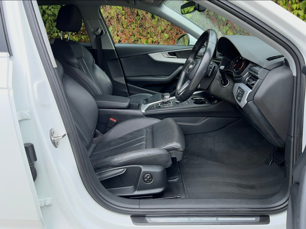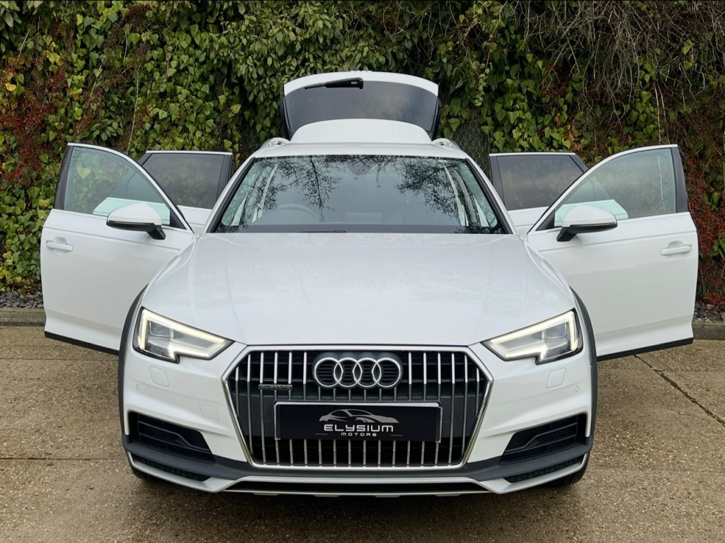 Immaculately Presented Audi A4 All Road TDI Quattro S In White With A Full Black Leather Interior, 2 Keys, Full Service History, Full Leather Heated Seats, Full Leather Multifunctional Steering Wheel, Dual Climate Control, Multi Media Interface, FM, DAB, Bluetooth Connectivity, SatNav, Cruise Control, Speed Limiter, Multiple Driving Modes, Front And Rear Parking Aid, Rain Sensors, Xenon Lights, Automatic Day Running Lights, Electric Heated Folding Mirrors, Electric Windows, Electric Tailgate, UK HOME DELIVERY AVAILABLE.All Vehicles Receive A Fresh MOT And Health Check As Well As A Full Valet Prior To Sale. All Vehicles Also Have Warranty Included For Additional Peace Of Mind.For Viewings And Enquiries Contact Tel: 07827975566Email: elysiummotorsoutlook.com in alloy wheels - 5-twin-spoke dynamic design, anti theft locking wheel bolts, body coloured door mirrors, chrome-plated trims for exhaust system, collapsible spare wheel, door mirrors - electrically adjustable and heated with built-in led indicators, electric windows - front and rear, front and rear bumpers and extended wheel arches in contrasting finish, high gloss package, off-road aluminium package, privacy glass and front acoustic glazing, windscreen with acoustic glazing, allroad radiator grille with vertical chrome slats, 2 x usb charging ports and 1 x aux-in, audi connect - 3 month trial, audi connect safety and service - e-call, audi smartphone interface, audi sound system, bluetooth interface, cd drive, dab digital radio, driver information system - 7in colour display, mmi navigation - sd card based, online media streaming - audi mmi connect app required, towbar preparation, 4-way electric lumbar support, auto-dimming rear-view mirror, deluxe 3-zone electronic climate control, door sill trims with aluminium inlay with allroad logo, electric load area cover, email - calendar and text messages can be displayed on your vehicles mmi, extended aluminium side sills, extended side sills in selenite silver, front centre armrest, heated front seats, high multifunction 3-spoke leather trimmed steering wheel with chrome clip, inlays - aluminium ellipse - silver, keyless go, led interior light package, manual height adjustment for front seats, off-road detection system, power operated tailgate, split-folding rear seat bench in 3 parts - 40-20-40 with rear centre armrest, stainless steel loading sill protector, storage package, tool kit and car jack, 6-airbag system, anti-theft alarm, esc - electronic stabilisation control inc abs - asr and edl, first aid kit and warning triangle, isofix child seat mounting and top tether, multi collision brake assist, parking system plus, pop-up bonnet for pedestrian protection, pre-sense city, remote central locking, seat belt monitoring, underbody protection, audi drive select with additional off-road mode, comfort dynamic suspension with 34mm increased ride height over a4 avant, cruise control system with freewheeling capability and speed limiter, electromechanical power steering, voice control, led headlights with led rear lights and dynamic rear indicators, light and rain sensor