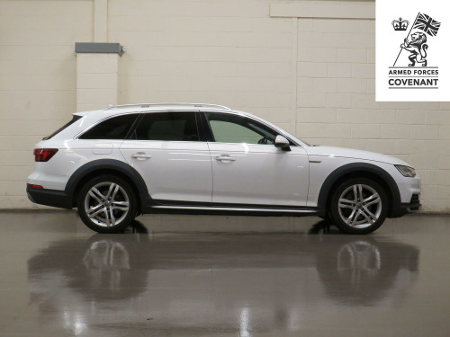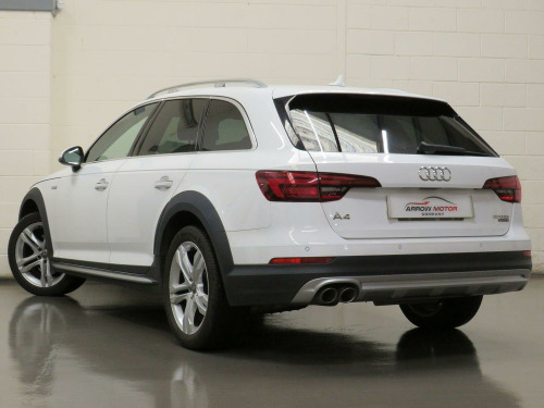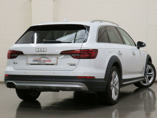 Arrow Motor Company are pleased to present this fantastic Audi A4 Allroad Sport S Tronic Quattro Avant finished in the stunning Ibis White Paintwork, with Contrasting Full Black Leather Interior. Equipped with Audis 2-Litre Diesel engine producing 187bhp, whilst providing the most economical of drivers with a respectable 56.5mpg, with potential to rise to 60.1mpg in Extra-Urban environments. This Particular Example is Complimented by A Full Service History (FSH). This vehicle also benefits from the following impressive list of features below. , ↓ ↓ ↓ ↓ ↓ ↓ ↓ ↓ ↓ ↓ ↓ ↓ ↓ ↓ ↓ ↓ ↓ ↓ ↓ ↓ ↓, , …. Interior Features…, , Satellite Navigation System | 6.5 Inch Digital Media Display | Front and Rear Ultrasonic Parking Sensor Display | 5.5 Inch Cluster Display | Full Black Leather Electrically Adjustable Heated Front Seats | Tri-Zone Automatic Climate Control with Digital Display | 6x Speaker System | Bluetooth Connectivity | DAB Radio | Voice Command | Cruise Control | Frameless Rear View Mirror | Cockpit Electric Boot Release Button | Down Hill Assist | Efficiency Mode | Comfort Mode | Dynamic Mode | Black Leather Multifunction Steering Wheel with Mounted Paddle Shifters | Black Leather Centre Console | Push Button Start | Electric Handbrake | Eco Stop/Start System | Wi-Fi Connectivity | Electrically Adjustable Heated Wing Mirrors | Front and Rear Electric Windows | Automatic Xenon Headlight Switch | Multifunctional Trip Computer | CD Player | 2x SD Port | SIM Port | Black Leather Deployable Rear Arm Rest | 2x Cup Holders | Front and Rear Interior Automatic Illumination | Leather Door Cards | Quattro Badge Branding | Quattro Branded Chrome Door Sill | , , … Exterior Features…, , 18-Inch 10 Spoke Metallic Silver Alloy Wheels | Powered Boot | Rear Privacy Glass | AllRoad Bodykit including Flared Arches | Front and Rear Ultrasonic Parking Sensors | LED Day Time Running Lights | Xenon Automatic Headlights | Dual Chrome Exhausts | Chrome Roof Rails | Silver Side Skirts | Chrome Front Grill | Chrome Lined Lip | Chrome Lined Windows | Chrome Boot Lip | Wing Mirror Mounted LED Indicators | Chrome Lined Door Handles | Body Coloured Roof |