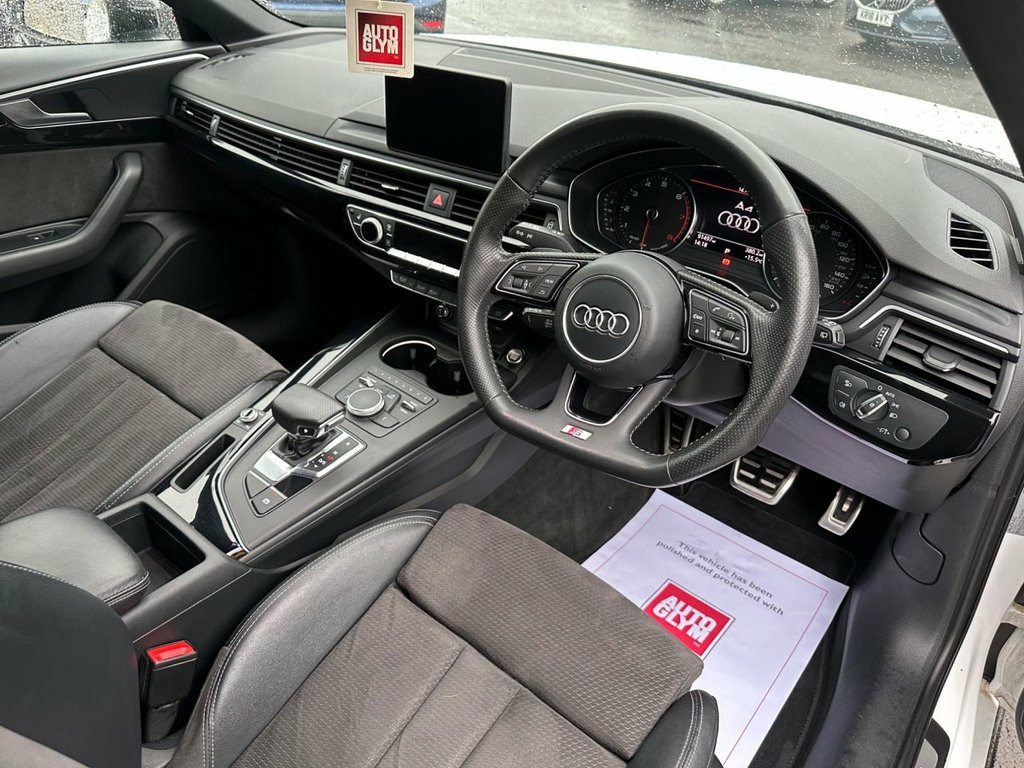 Finished in Ibis white, boasting full Audi service history until 2024, Elegant, refined, and superbly built — this 2017 (67) Audi A4 Avant 1.4 TFSI Black Edition S Tronic combines premium quality with practicality and style. Powered by the 1.4-litre TFSI petrol engine producing 150PS and paired with the smooth S Tronic automatic gearbox, it delivers effortless performance and excellent fuel efficiency with Euro 6 emissions compliance. The Black Edition model adds distinctive styling and an impressive specification, including satellite navigation, Bang & Olufsen sound system, privacy glass, 19-inch alloy wheels, LED headlights, cruise control, and front and rear parking sensors. Spacious, luxurious, and beautifully finished, the A4 Avant is ideal for both family and business use. Presented in excellent condition throughout and fully inspected and prepared to our high retail standards 19in Alloy Wheels - 5-Arm Rotor Matt Tit, 4-Way Electric Lumbar Support, 6-Airbag System, Anti Theft Locking Wheel Bolts, Anti-Theft Alarm, Audi Connect - 3 Month Trial, Audi Connect Safety and Service - e-call, Audi Drive Select, Audi Smartphone Interface, Audi Sound System, Auto-Dimming Rear-View Mirror, Black Styling Package, Bluetooth Interface, CD Drive, Chrome-Plated Trims for Exhaust System, Cloth Headlining in Black, Cruise Control System with Freewheeling , DAB Digital Radio, Deluxe 3-Zone Electronic Climate Control, Door Handles - Body Coloured, Door Mirrors - Electrically Adjustable a, Driver Information System - 7in Colour D, Electric Load Area Cover, Electric Windows - Front and