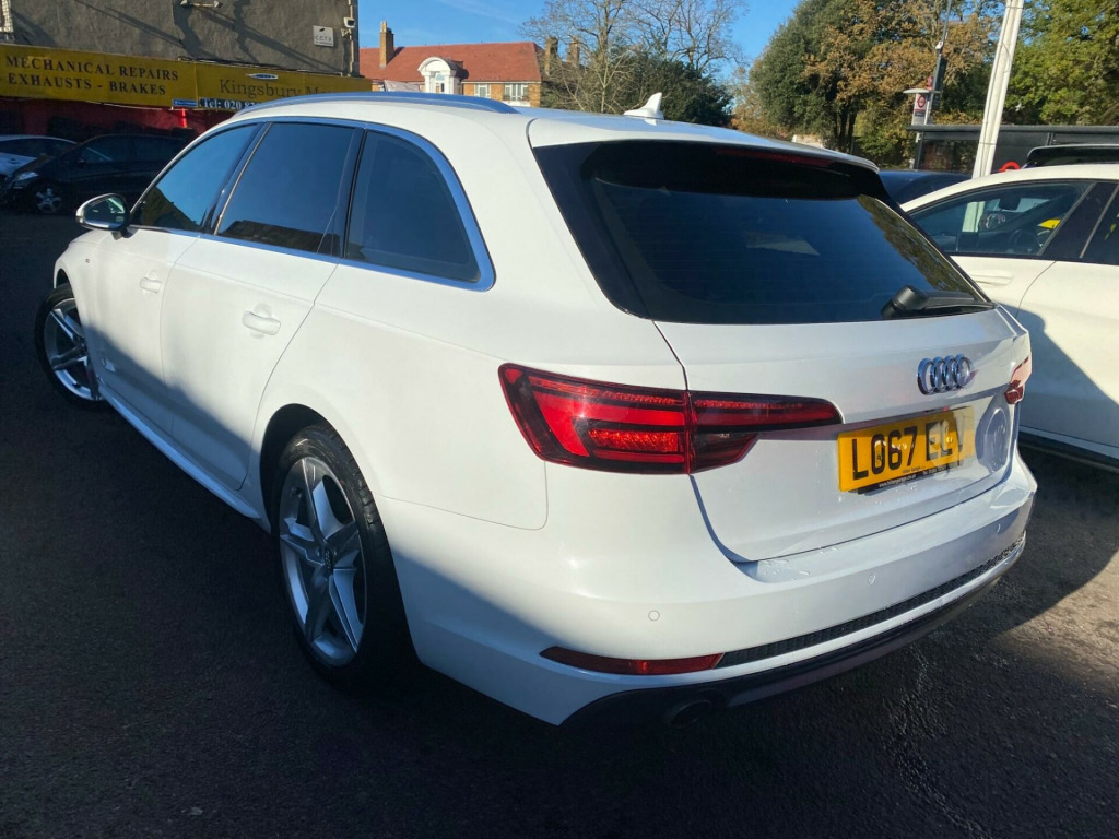 Cars Yard is delighted to present this stunning Audi A4 Avant ((((((***FREE 6 MONTHS WARRANTY + 12 MONTHS FREE AA BREAKDOWN COVER ****))))) USED BY 4 FORMER KEEPER, SERVICE HISTORY, GREAT CONDITION IN AND OUT ***Excellent condition*** 5 Day Driveaway Insurance at Additional cost available for cars up to 10 years old STS, FINANCE AVAILABLE, CALL US ON 02045392878. AA Approved Dealer, FCA registered Dealer ar view camera, rear side airbags, 18in alloy wheels - 5-twin-spoke star design, 4-way electric lumbar support, 6-airbag system, aluminium roof rails, anti theft locking wheel bolts, anti-theft alarm, audi connect - 3 month trial, audi connect safety and service - e-call, audi drive select, audi smartphone interface, audi sound system, auto-dimming rear-view mirror, bluetooth interface, body coloured door mirrors, cd drive, chrome-plated trims for exhaust system, cloth headlining in black, cruise control system with freewheeling capability and speed limiter, dab digital radio, deluxe 3-zone electronic climate control, door handles - body coloured, door mirrors - electrically adjustable and heated with built-in led indicators, driver information system - 7in colour display, esc - electronic stabilisation control inc abs - asr and edl, electric load area cover, electric windows - front and rear, electromechanical power steering, first aid kit and warning triangle, front centre armrest, gear lever knob in black perforated leather, heated front seats, high gloss package, high multifunction s line 3-spoke leather trimmed sport steering wheel with grips in perforated leather, isofix child seat mounting and top tether, illuminated door sill trims with s logo, inlays - matt brushed aluminium, keyless go, led headlights with led rear lights and dynamic rear indicators, led interior light package, light and rain sensor, mmi navigation - sd card based, manual height adjustment for front seats, multi collision brake assist, parking system plus, pedals and footrest - stainless steel, pop-up bonnet for pedestrian protection, power operated tailgate, pre-sense city, radiator grille - twilight grey matt with inlays in chrome, rear diffuser in twilight grey matt, rear grille - black grained, remote central locking, s line badges on front wings, s line front and rear bumpers and side skirts, seat belt monitoring, side air inlet grille in titan black matt with chrome inlays in unique s line design, space saver spare wheel, split-folding rear seat bench in 3 parts - 40-20-40 with rear centre armrest, sport suspension, sun visors - with vanity mirror, tool kit and car jack, towbar preparation, two usb charging ports, tyre pressure warning light, voice control, windscreen with acoustic glazing