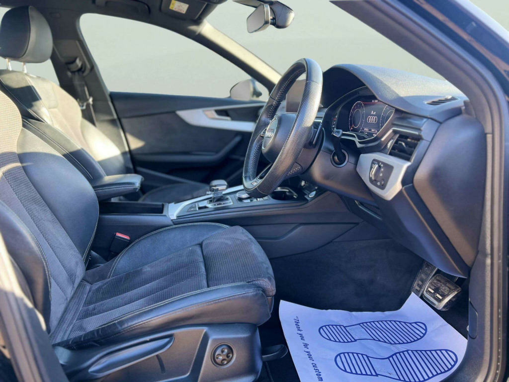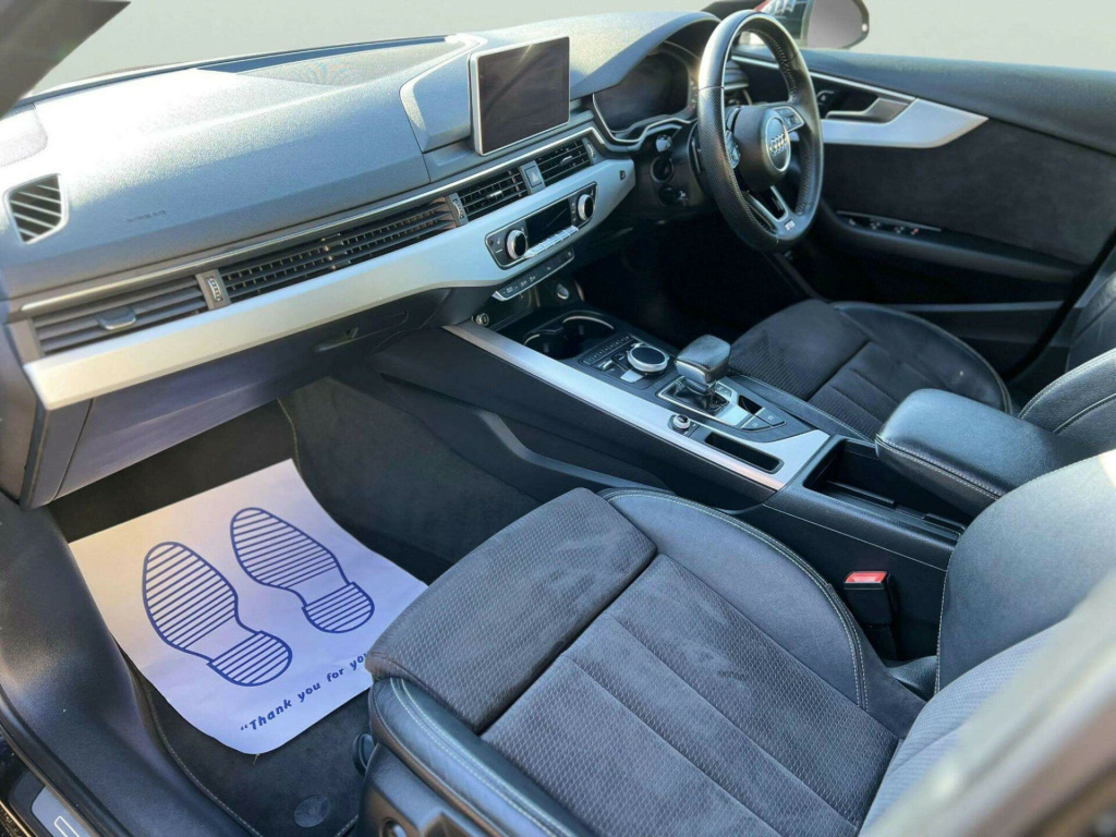 ------FINANCE OPTIONS AVAILABLE, PART/EXCHANGE WELCOME. NATIONWIDE WIDE DELIVERY. -----,HPI CLEAR, ULEZ COMPLIANCE, FULL-SERVICE HISTORY, AND 1 YEAR FREE WARRANTY FOR YOUR PEACE OF MIND.=================This 2018 Audi A4 Avant TFSI S line boasts exceptionally low mileage for its age, having covered just 47,622 miles. This Euro 6 compliant 1.4 litre petrol model comes with a full service history, with its last service completed on 15 January 2026 at 47,620 miles, and a clear vehicle history check. You can drive with confidence knowing it includes a 12 month warranty and its MOT is valid until January 2027. The S line trim enhances its appeal, featuring striking LED headlights with dynamic rear indicators and LED rear lights. Inside, you'll appreciate the comfort of heated front seats and the convenience of the Bluetooth interface for seamless connectivity.Further enhancing your driving experience, this A4 Avant is equipped with the Parking System Plus, offering front and rear sensors to assist with manoeuvring. The Light and Rain Sensor automatically adjusts headlights and wipers, ensuring optimal visibility. These features, combined with an impressive fuel economy of 50 mpg and low CO2 emissions, highlight how this Audi A4 Avant offers a more efficient and convenient ownership proposition compared to many other vehicles in its class. in alloy wheels - 5-twin-spoke star design, 4-way electric lumbar support, 6-airbag system, aluminium roof rails, anti theft locking wheel bolts, anti-theft alarm, audi connect - 3 month trial, audi connect safety and service - e-call, audi drive select, audi smartphone interface, audi sound system, auto-dimming rear-view mirror, bluetooth interface, body coloured door mirrors, cd drive, chrome-plated trims for exhaust system, cloth headlining in black, cruise control system with freewheeling capability and speed limiter, dab digital radio, deluxe 3-zone electronic climate control, door handles - body coloured, door mirrors - electrically adjustable and heated with built-in led indicators, driver information system - 7in colour display, esc - electronic stabilisation control inc abs - asr and edl, electric load area cover, electric windows - front and rear, electromechanical power steering, first aid kit and warning triangle, front centre armrest, gear lever knob in black perforated leather, heated front seats, high gloss package, high multifunction s line 3-spoke leather trimmed sport steering wheel with grips in perforated leather, isofix child seat mounting and top tether, illuminated door sill trims with s logo, inlays - matt brushed aluminium, keyless go, led headlights with led rear lights and dynamic rear indicators, led interior light package, light and rain sensor, mmi navigation - sd card based, manual height adjustment for front seats, multi collision brake assist, parking system plus, pedals and footrest - stainless steel, pop-up bonnet for pedestrian protection, power operated tailgate, pre-sense city, radiator grille - twilight grey matt with inlays in chrome, rear diffuser in twilight grey matt, rear grille - black grained, remote central locking, s line badges on front wings, s line front and rear bumpers and side skirts, seat belt monitoring, side air inlet grille in titan black matt with chrome inlays in unique s line design, space saver spare wheel, split-folding rear seat bench in 3 parts - 40-20-40 with rear centre armrest, sport suspension, sun visors - with vanity mirror, tool kit and car jack, towbar preparation, two usb charging ports, tyre pressure warning light, voice control, windscreen with acoustic glazing