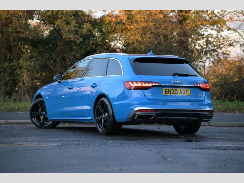Prestige Car Supermarket in York presents this highly dynamic and capable 2020 Audi A4 Avant 2.0 TDI 30 S line Estate. Finished in the striking optional Turbo Blue paintwork, this practical five-door diesel model delivers 136 horsepower through a smooth S Tronic automatic transmission and is Euro 6 compliant. The sporty S line specification is enhanced by 19in 5-Arm Torsio Alloy Wheels, S line exterior styling, and Privacy Glass. The interior is luxurious, featuring optional Black Leather and Alcantara upholstery, Heated Front Seats, Stainless Steel Pedals, Black Cloth Headlining, and the 3-spoke Leather High Multi-function Sport Steering Wheel. Technology is cutting-edge with the Audi Virtual Cockpit, MMI Navigation Plus including MMI Touch, DAB Digital Radio, and the Audi Smartphone Interface. Practicality is assured by the Power Operated Tailgate, Electric Load Area Cover, and Aluminium Roof Rails. Driver assistance systems include LED Headlights with Dynamic Rear Indicators, Parking System Plus with a Rear-View Camera, Cruise Control, and Deluxe 3-Zone Electronic Climate Control, ensuring a secure, connected, and highly enjoyable driving experience. Leather-Alcantara - Black, Turbo Blue, 19in Alloy Wheels - 8.5J 5-Arm Torsio De, 2 USB Charging Ports, 3-spoke Leather High Multi-function Spor, 4-Way Electric Lumbar Support, 6-Airbag System, 8 Passive Loudspeakers, Aluminium Roof Rails, Anti Theft Locking Wheel Bolts, Anti-Theft Alarm, Audi Connect Infotainment Services (36 M, Audi Connect Safety and Service, Audi Drive Select, Audi Smartphone Interface, Audi Virtual Cockpit, Auto-Dimming Rear-View Mirror, Automatic Start-Stop with Coasting Funct, Bluetooth Interface, Body Coloured Door Mirrors, Body Coloured Side Sill Trims, Cloth Headlining in Black, Contrast Stitching on Seats - Steering W, Cruise Control System with Speed Limiter, DAB