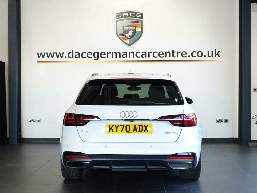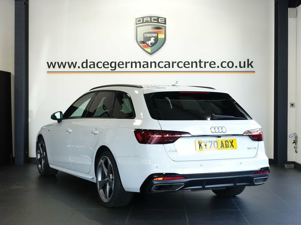 Audi A4 Avant Black Edition | White | Full Service History | HPI Clear Finished in White with Black half-leather interior, this Audi A4 Avant Black Edition blends sharp styling, practicality, and premium tech. Backed by a full service history and HPI clear, it's been well maintained and is ready for its next owner. Key features include the Virtual Cockpit, satellite navigation, Apple CarPlay, heated front seats, reverse camera, and front & rear parking sensors — everything you need for a connected and confident drive. Enjoy comfort and convenience with 3-zone climate control, air conditioning, Bluetooth, DAB digital radio, multi-function steering wheel, automatic lights, electric mirrors/windows, and roof rails. Styled with 19" alloys and privacy glass, this Avant looks every bit as sporty as it feels, while offering the space and versatility you'd expect. A stunning, high-spec Audi estate with excellent history — style, tech, and practicality all in one. ••• F I N A N C E • A V A I L A B L E ••• - *** NOT SURE YOU'RE ELIGIBLE FOR CAR FINANCE? *** CHECK TODAY USING OUR FREE CAR FINANCE CHECKER ON OUR WEBSITE.*** Dace Motor Group have a dedicated team of finance experts waiting to help with your enquiry. Over the past 30 years we have forged relationships with the country's largest and best finance houses. We are specialists in Hire Purchase (HP), Personal Contract Purchase (PCP) as well as assistin 19in Alloy Wheels - 5-Arm Rotor Matt Tit, 2 USB Charging Ports, 4-Way Electric Lumbar Support, 6-Airbag System, 8 Passive Loudspeakers, Anti Theft Locking Wheel Bolts, Anti-Theft Alarm, Audi Connect Infotainment Services - 36 , Audi Connect Safety and Service, Audi Drive Select, Audi Smartphone Interface, Audi Virtual Cockpit, Auto-Dimming Rear-View Mirror, Automatic Start-Stop with Coasting Funct, Bluetooth Interface, Body Coloured Side Sill Trims, Cloth Headlining in Black, Contrast Stitching on Seats - Steering W, Cruise Control System with Speed Limiter, DAB Digital Radio Reception, Deluxe 3-Zone Electronic Climate Control, Door Handles - Body Coloured, Door Mirrors - Folding with Auto-D