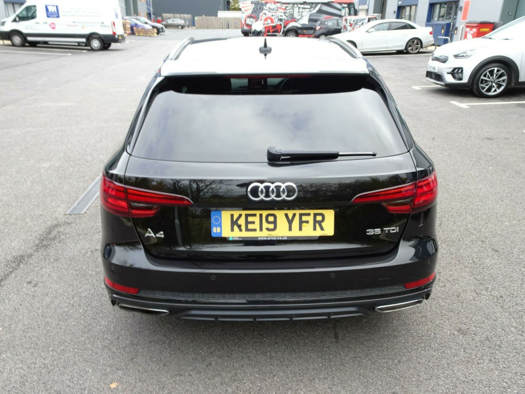 This 2019 Audi A4 Avant TDI Black Edition boasts a full service history and a clear vehicle history check, offering you complete peace of mind. This car is in excellent condition inside and outside and is complimented by a Fully Documented Service History. In addition the car is supplied with our own Service, Inspection and fresh MOT for total peace of mind. This stylish estate car features a 2.0 litre Euro 6 diesel engine, ensuring efficient performance. The Black Edition trim adds a touch of sophistication, complemented by practical features such as Satellite Navigation, DAB Radio, LED headlights with dynamic rear indicators for enhanced visibility. Inside, you'll find comfort and convenience with Deluxe 3-Zone Electronic Climate Control and heated front seats, perfect for any journey. The Bluetooth interface allows for seamless connectivity, while the Parking System Plus with front and rear sensors makes manoeuvring effortless. The styling is enhanced by the Black Edition Alloys and Privacy Glass.This Audi A4 Avant stands out with its low insurance group, making it a more economical choice compared to similar vehicles. With its comprehensive service history and clear vehicle check, this well maintained A4 Avant is a sound investment for anyone seeking a reliable and well equipped estate car.If you are looking for a premium quality diesel estate car with FSH at a sensible price, this is the car for you! Ready to drive away... 19in Alloy Wheels - 5-Arm Rotor Matt Titanium Look - Diamond Cut, 2 x USB Charging Ports and 1 x AUX-IN, 4-Way Electric Lumbar Support, 6-Airbag System, ABS - Anti-Lock Braking System, Anti Theft Locking Wheel Bolts, Anti-Theft Alarm, Audi Connect Safety and Service - e-call, Audi Drive Select, Audi Sound System, Auto-Dimming Rear-View Mirror, Bluetooth Interface, Chrome-Plated Trims for Exhaust System, Cloth Headlining in Black, Cruise Control System with Freewheeling Capability and Speed Limiter, DAB Digital Radio, Deluxe 3-Zone Electronic Climate Control, Door Mirrors - Electrically Adjustable and Heated with Built-in LED Indicators, Door Mirrors - Electrically Folding, Door Mirrors - High-Gloss Black, Driver Information System - 7in Colour Display, ESC - Electronic Stabilisation Control inc ABS - ASR and EDL, Electric Load Area Cover, Electric Windows - Front and Rear, Electromechanical Parking Brake, Electromechanical Power Steering, First Aid Kit and Warning Triangle, Flat Bottomed 3-Spoke Leather High Multi-Function Steering Wheel, Front Centre Armrest, Front and Rear Air Intakes in Titanium Black, Front and Rear Floor Mats, Gear Lever Knob in Black Perforated Leather, Heated Front Seats, High Gloss Black Roof Rails, High Gloss Package, High-Beam Assist, ISOFIX Child Seat Mounting and Top Tether, Illuminated Door Sill Trims with S Logo, Inlays - Piano Finish - Black, Interior Lighting, Keyless Go, LED Headlights with LED Rear Lights and Dynamic Rear Indicators, Light and Rain Sensor, Luggage Compartment Mat, MMI Navigation - SD Card Based, MMI Radio Plus with Smartphone Interface, Manual Height Adjustment for Front Seats, Multi Collision Brake Assist, Non-Smoking Package, Parking System Plus, Pedals and Footrest - Stainless Steel, Pop-Up Bonnet for Pedestrian Protection, Power Operated Tailgate, Pre-Sense City, Privacy Glass and Front Acoustic Glazing, Radiator Grille and Frame in Titanium Black, Rear Diffuser in Twilight Grey Matt, Rear Grille - Black Grained, S Line Badges on Front Wings, S Style Rear Spoiler in High Gloss Black, S line Front and Rear Bumpers and Side Skirts, S line Roof Edge Spoiler, Seat Belt Monitoring, Split-Folding Rear Seat Bench in 3 Parts - 40-20-40 with Rear Centre Armrest, Sport Suspension, Sun Visors - with Vanity Mirror, Tailpipes in Chrome, Tool Kit and Car Jack, Towbar Preparation, Tyre Pressure Warning Light, Tyre Repair Kit, Variable Restraint System, Window Surrounds in Titanium Black, Windscreen with Acoustic Glazing. Full service history