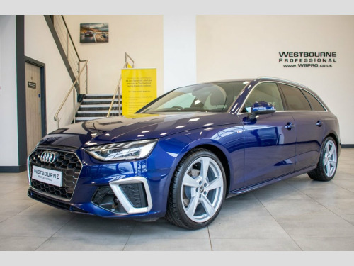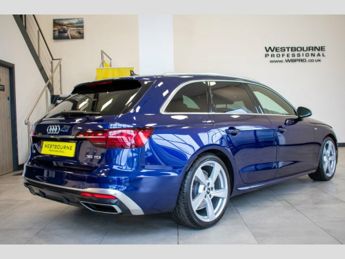 2022 '72' Audi A4 Avant 2.0 TDI 35 S Line, finished in Navarra Blue with Rotor Grey Leather & Dinamica interior. Equipped with great specification including Audi MMI Satellite Navigation System, Heated Front Seats, Audi Virtual Cockpit, Front & Rear Parking Sensors, Rear View Camera, Wireless Smartphone Interface for Apple CarPlay / Android Auto, Cruise Control, Audi Drive Select, Power Tailgate, Automatic LED Headlights with High Beam Assist, Heated Power Folding Mirrors, Leather Multifunction Steering Wheel with Paddle Shift, Automatic 3-Zone Climate Control, Rear Privacy Glass and more. A one owner example complete with full service history carried out on 26/05/2023 at 11589 miles, 27/02/2024 at 22022 miles and 05/11/2025 at 36161 miles. Microfibre Dinamica - Sports Seats with , Navarra Blue, 19in Alloy Wheels - 8.5J 5-Arm Torsio De, 2 USB Charging Ports, 3-spoke Leather High Multi-function Spor, 4-Way Electric Lumbar Support, 6-Airbag System, 8 Passive Loudspeakers, Aluminium Roof Rails, Anti Theft Locking Wheel Bolts, Anti-Theft Alarm, Audi Connect Infotainment Services (36 M, Audi Connect with Amazon Alexa Integrati, Audi Drive Select, Audi Smartphone Interface, Audi Virtual Cockpit, Auto-Dimming Rear-View Mirror, Automatic Start-Stop with Coasting Funct, Bluetooth Interface, Body Coloured Door Mirrors, Body Coloured Side Sill Trims, Cloth Headlining in Black, Contrast Stitching on Seats - Steering W, Cruise Control Syste