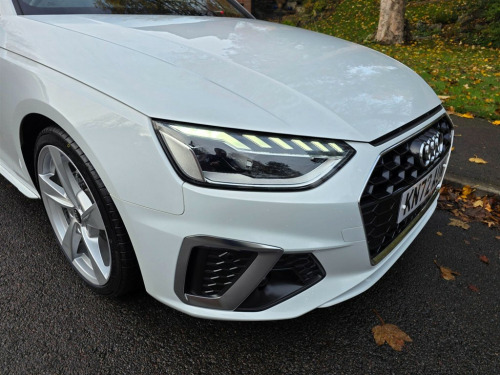This 2022 Audi A4 Avant TDI S line is a superb example, having been owned by just one careful keeper from new. This Euro 6 compliant model boasts a powerful 2.0 litre diesel engine and comes with a full 12 months MOT for your peace of mind. Inside, you'll find a host of desirable features designed for comfort and connectivity, including a Bluetooth interface, the Audi Smartphone Interface with both Android Auto and Apple CarPlay, and deluxe 3-zone electronic climate control. For added comfort on colder days, the front seats are heated, and parking is made effortless with the front and rear parking system plus. The performance of this A4 Avant is equally impressive, with its ability to accelerate from 0 to 62 miles per hour in a swift 7.1 seconds. This brisk acceleration, combined with the advanced technology and comfort features, clearly sets this Audi apart from other vehicles in its class, offering a refined and engaging driving experience for any journey. S Line Rear Diffuser in Matt Anthracite Black with Trim Strip in Matt Aluminium Silver,3-spoke Leather High Multi-function Sport Steering Wheel with Grips in Perforated Leather with S Badging,4-Way Electric Lumbar Support,8 Passive Loudspeakers,Audi Drive Select,Audi Smartphone Interface,Audi Virtual Cockpit,Auto-Dimming Rear-View Mirror,Automatic Start-Stop with Coasting Functionality and Efficiency Programme,Bluetooth Interface,Cruise Control System with Speed Limiter,DAB Digital Radio Reception,Deluxe 3-Zone Electronic Climate Control,Front Sports Seats,Heated Front Seats,Hill Hold Assist,ISOFIX Child Seat Mounting and Top Tether,Keyless Go,MMI Navigation Plus including MMI Touch,Multi Collision Brake Assist,Parking System Plus - Front and Rear Sensors,Rear-View Camera,Sport Suspension,Windscreen with Acoustic Glazing
