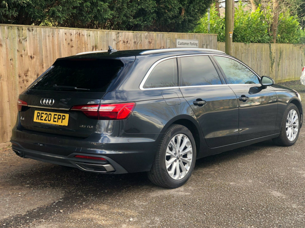 With only one previous owner, this 2020 Audi A4 Avant TDI Technik in Technik trim is a great estate car. Featuring a 2.0L diesel engine and meeting Euro 6 emission standards, this A4 Avant combines practicality with modern technology. The interior benefits from a Deluxe 3-Zone Electronic Climate Control system, ensuring comfort for all passengers, while the Audi Smartphone Interface, complete with Android Auto and Apple CarPlay, keeps you connected on the move. Manoeuvring is made easy with Parking System Plus, which includes front and rear sensors. The inclusion of LED headlights and rear lights, along with LED daytime-running lights, enhances visibility and adds to the car's sleek aesthetic.This A4 Avant stands out with its impressive fuel economy of 58 mpg, meaning fewer trips to the petrol station and more money in your pocket. Furthermore, acceleration from 0-62mph in just 8.5 seconds demonstrates that this vehicle offers a responsive and engaging driving experience. This combination of efficiency and performance makes it a compelling choice in its class.. 17in Alloy Wheels - 7.5J 10-Spoke Crystal Design, 2 USB Charging Ports, 3-Spoke Leather High Multifunction Sport Steering Wheel, 4-Way Electric Lumbar Support, 6-Airbag System, 8 Passive Loudspeakers, Aluminium Roof Rails, Anti Theft Locking Wheel Bolts, Anti-Theft Alarm, Audi Connect Infotainment Services - 36 Month Subscription, Audi Connect Safety and Service, Audi Drive Select, Audi Smartphone Interface, Audi Virtual Cockpit, Auto-Dimming Rear-View Mirror, Automatic Start-Stop with Coasting Functionality and Efficiency Programme, Bluetooth Interface, Body Coloured Door Mirrors, Comfort Dynamic Suspension, Cruise Control System with Speed Limiter, DAB Digital Radio Reception, Deluxe 3-Zone Electronic Climate Control, Door Mirrors - Folding with Auto-Dimming, Door Sill Trims with Aluminium Inlay, ESC - Electronic Stabilisation Control inc ABS - ASR and EDL, Electric Load Area Cover, Electric Windows - Front, Electromechanical Power Steering, Email - Calendar and Text Messages can be Displayed on your Vehicles MMI, First Aid Kit and Warning Triangle, Front Centre Armrest, Heated Front Seats, High Gloss Package, Hill Hold Assist, ISOFIX Child Seat Mounting and Top Tether, Inlays - Aluminium Ellipse - Silver, Interior Lighting, Keyless Go, LED Headlights and Rear Lights with LED Daytime-Running Lights, Light and Rain Sensor, MMI Navigation Plus including MMI Touch, Manual Seat Adjustment, Multi Collision Brake Assist, New Design Rear Diffuser, Parking System Plus - Front and Rear Sensors, Pop-Up Bonnet for Pedestrian Protection, Power Operated Tailgate, Pre-Sense City, Rear-View Camera, Seat Belt Monitoring, Split-Folding Rear Seat Bench in 3 Parts - 40-20-40 with Rear Centre Armrest, Tool Kit, Tyre Repair Kit, Voice Control, Windscreen with Acoustic Glazing. Full service history