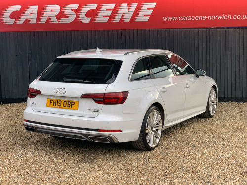 This 2019 Audi A4 Avant 2.0 TDI 40 S line S Tronic quattro Euro 6 (s/s) 5dr Estate is currently available for £16,999 in Norwich Norfolk with Diesel engine and Automatic gearbox. For more information or to arrange a viewing, click here to send us an email using form below.