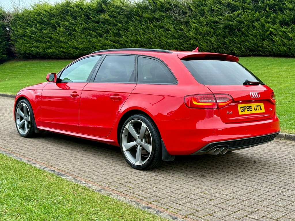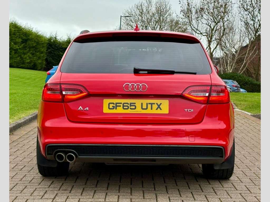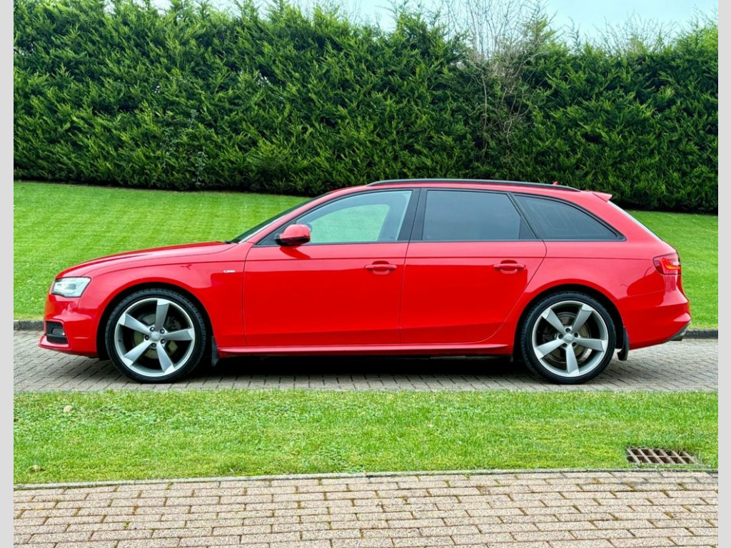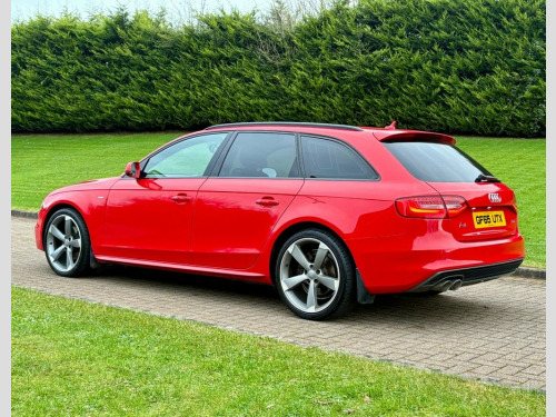 October 2015 Audi A4 Avant 2.0TDI 150 S-Line in Red. Service History and MOT'd to January 2026. Loaded with spec including Full Leather Interior, Heated Seats, LED Daytime Running Lights, Navigation System, Bluetooth, DAB Radio, Multifunctional Steering Wheel, Dual Climate Control, Privacy Glass, Upgraded TTRS Alloys etc. FINANCE AVAILABLE AT KEEN RATES!! Viewing by Appointment Only Please 12V Power Socket, 12V Power Socket - Luggage Compartment, 12V Power Socket x2, 18in Alloy Wheels - 5-Twin Spoke Design, ABS - Anti-Lock Braking System, Acoustic Windscreen, Airbags - Driver, Airbags - Front Passenger, Airbags - Front Side, Airbags - Head System, Alarm - Thatcham Category 1, Anti Theft Locking Wheel Bolts, Audi Sound System, Auto-Dimming Rear-View Mirror, Automatic Wipers with Rain Sensor, AUX-IN Socket, Bumpers - Front and Rear - S Line Design, Car Jack, Climate Control - Electronic 3-Zone, Cloth Headlining in Black, Colour Drivers Information System - DIS, Concert Radio - MP3/CD Player, Cruise Control, DAB Digital Radio, Diffuser - Platinum Grey, Display Screen Colour TFT 7