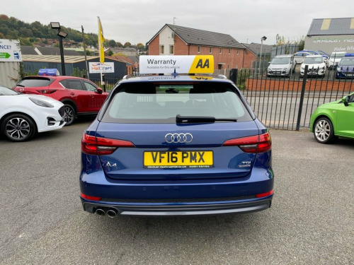 This 2016 Audi A4 Avant TDI S line presents an exceptional opportunity with its remarkably low mileage of just 57,000 miles, a testament to its careful ownership by only two previous keepers. As a Euro 6 compliant model, it features a powerful yet efficient 2.0 litre diesel engine paired with Audi's renowned four wheel drive system, ensuring confident handling in all conditions. The S line trim enhances its sporty appeal, and you'll appreciate the convenience of Deluxe 3-Zone Electronic Climate Control, LED headlights with dynamic rear indicators, and the integrated Bluetooth interface for seamless connectivity. Furthermore, the Parking System Plus, with front and rear sensors, makes manoeuvring effortless, while the Light and Rain Sensor automatically adjusts your headlights and wipers. This Audi A4 Avant truly excels with its impressive performance figures, achieving 0-60mph in a swift 7.1 seconds, demonstrating a dynamic driving experience that surpasses many vehicles in its class. Complementing this performance is its outstanding fuel economy, boasting an impressive 61 miles per gallon, making it an economical choice for both long journeys and daily commutes. These highlights, combined with its low mileage and excellent condition, position this A4 Avant as a superior option for those seeking a premium estate car that balances performance, efficiency, and advanced features. 18in Alloy Wheels - 5-Twin-Spoke Star De, 4-Way Electric Lumbar Support for Front , 6-Airbag System, Aluminium Roof Rails, Anti Theft Locking Wheel Bolts, Anti-Theft Alarm, Audi Connect - 3 Month Trial, Audi Drive Select, Audi Smartphone Interface, Audi Sound System, Auto-Dimming Rear-View Mirror, Bluetooth Interface, Body Coloured Door Mirrors, Chrome-Plated Trims for Exhaust System, Cloth Headlining in Black, Cruise Control with Speed Limiter, DAB Digital Radio, Deluxe 3-Zone Electronic Climate Control, Door Mirrors - Electrically Adjustable a, Drivers Information System - 5in Monochr, ESC - Electronic Stabilisation Control i, Electric Load Area Cover, Electric Windows - Front and Rear, El