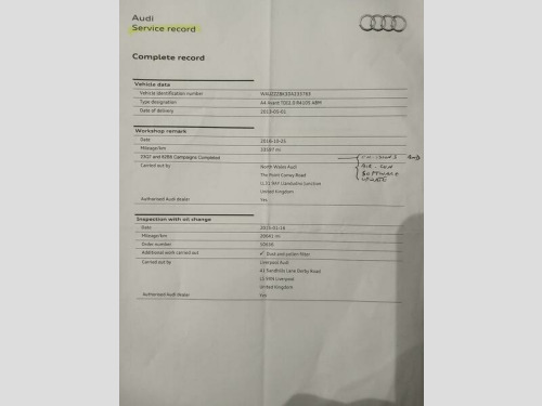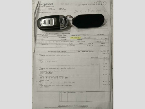 Excellent example of this Audi A4 Estate S line TDI CVT, comes with full service history(Pictured) and lovely low miles, Part exchange welcome, HPI Clear, All our vehicle are hand pick and specially selected to qualify for the AA Dealer Promise Program providing you with total peace of mind., We guarantee all our vehicles are 100% HPI Checked and supplied with a full 12 Mth MOT plus a 12 Mth AA RoadSide Assistance and a comprehensive AA parts and labour Warranty Package. Together with our teams no pressure sales approach and with over 40 years combined experience and good old-fashioned customer service you are in very safe hands. Part exchanges are always welcome, and help is always on hand to advise on potential finance options and the many extended vehicle warranties that are available., Zero contact home delivery available please ask for details. Zero Contact Home Delivery or Click and Collect Available on all our vehicles. 12V Power Socket, ABS, Automatic Rearview Mirror Dimming, Bluetooth, Central Locking, Cruise Control, Daytime Running Lights, ESP, Electric Windows, Folding Rear Seats, Front Airbags, Front Fog Lights, Heated Door Mirrors, Parking Sensors, Power Assisted Steering, Radio, Rain Sensor, Spare Wheel, Sports Suspension