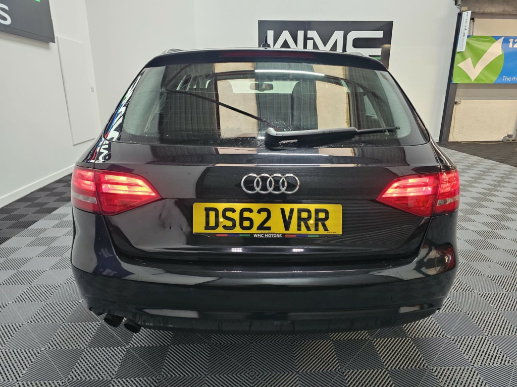 **2013 AUDI A4 TECHNIK TDI ESTATE BLACK***, **2.0 DIESEL*, **86K MILES*, **2 OWNERS FROM NEW*, **PART SERVICE HISTORY WITH 6 ENTRIES*, **JUST HAD A MAJOR SERVICE*, **2 KEYS*, **REMOTE CENTRAL LOCKING*, **MULTI FUNCTION STEERING WHEEL*, **BLUETOOTH/USB/DAB/AUX*, **SAT NAV*, **LEATHER SEATS*, **REAR PARKING ASSIST*, **TRIP COMPUTER*, **ELECTRIC WINDOWS*, **ELECTRIC MIRRORS*, **ALLOY WHEELS**, , ***PLEASE EMAIL OR CALL TO ARRANGE VIEWINGS, OUR CONTACT INFORMATION IS AVAILABLE ON OUR WEBSITE***, ***Find us on GOOGLE, INSTAGRAM and FACEBOOK just search for WMC MOTORS***, ***Part exchanges welcome including mot failures, All debit and credit cards accepted, Friendly professional staff, All vehicles HPI checked, Visit our website for a range of quality affordable cars***, ***WE ARE BASED IN LIVINGSTON, SCOTLAND JUST OFF THE M8 BETWEEN EDINBURGH AND GLASGOW***, ***LOW RATE FINANCE AVAILABLE FOR ANYONE ***, ***FREE 12 MONTHS WARRANTY AND BREAKDOWN RECOVERY SERVICE INCLUDED IN PRICE OF EVERY CAR, WE OFFER 24 MONTHS EXTENDED WARRANTY ***, ***ANY INSPECTION WELCOME, RAC, AA, INDEPENDENT TECHNICIAN***, ***Every effort has been made to ensure the accuracy of the above information but errors may occur. Please check with a salesperson***