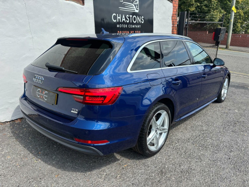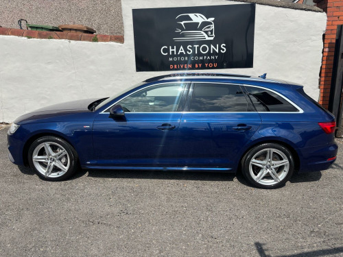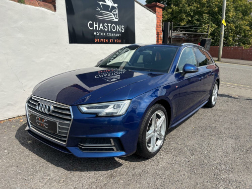 66 Plate Audi A4 Estate 2.0TDi S-Line Ultra 190ps Automatic, Finished in Scuba Blue Metallic, Comes with Excellent Factory Spec Including 18 Alloys, Tinted Windows, Silver Roof Bars, LED Lights, Keyless Entry, Push Button Start, Electric Windows, Electric Folding Mirrors, Half Leather S-Line Interior, Heated Seats, A/C, Digital Climate Control, Power Tailgate, Satellite Navigation, Cruise Control, Speed Limiter, Automatic Lights/Wipers, Driving Modes, Bluetooth, Trip Computer, Fantastic Low Mileage Example, 1 Owner From New, Comes with Full Service History, Vehicle Drives Absolutely Superb, Excellent Performance and Fuel Economy, Upto 65.7Mpg Combined, Only £35 Road Tax, , , Looking for Finance? Please visit www.chastonsmotorcompany.co.uk where you will be able to access our finance calculator