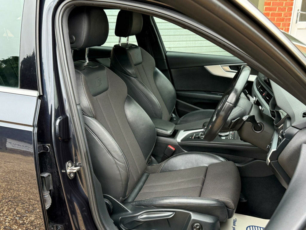 HPI Clear, free 6 months warranty, Full Service History with a brand new full service and recent MOT carried out. Free 30 miles delivery. 2 keys. ULEZ compliant. Just 2 owners from new. Annual road tax just £35. CamBelt replaced at Audi main dealership in April 2022 at 29,590 miles. This amazing car is ready to drive away same day!!!We have for you here an excellent, a very high in demand and popular automatic Audi A4 Avant in immaculate condition both inside and out. This exceptionally reliable and well maintained car, drives and feels great. Packed with features and extras. This car is economical to run, insure and maintain, and it is a fantastic car at unbeatable price! Only 2 owners from new! Has 2 keys, full service history with a brand new full service, recent MOT and the car includes 6 months warranty with options to extend. Full HPI checked and PASSED. HPI certificate provided at NO EXTRA COST. A car that ticks all the boxes! Buy with confidence! Finance options available, contact us for more information.Contact number: 01344926227 Or 07459108076 in alloy wheels - 5-twin-spoke star design, 4-way electric lumbar support for front seats, 6-airbag system, aluminium roof rails, anti theft locking wheel bolts, anti-theft alarm, audi connect - 3 month trial, audi drive select, audi smartphone interface, audi sound system, auto-dimming rear-view mirror, bluetooth interface, body coloured door mirrors, chrome-plated trims for exhaust system, cloth headlining in black, cruise control with speed limiter, dab digital radio, deluxe 3-zone electronic climate control, door mirrors - electrically adjustable and heated with built-in led indicators, drivers information system - 5in monochrome display, esc - electronic stabilisation control inc abs - asr and edl, electric load area cover, electric windows - front and rear, electromechanical parking brake, electromechanical power steering, first aid kit and warning triangle, front and rear floor mats, gear lever knob in black perforated leather, high gloss package, isofix child seat mounting and top tether, illuminated door sill trims with s logo, inlays - matt brushed aluminium, keyless go, led headlights with led rear lights and dynamic rear indicators, led interior light package, light and rain sensor, luggage compartment mat, mmi navigation - sd card based, manual height adjustment for front seats, model and engine technology badges at rear, multi collision brake assist, non-smoking package, parking system plus, pedals and footrest - stainless steel, pop-up bonnet for pedestrian protection, power operated tailgate, pre-sense city, radiator grille - twilight grey matt with inlays in chrome, rear diffuser in twilight grey matt, rear grille - black grained, remote central locking, s line 3-spoke leather multi-function sport steering wheel - grips in perforated leather, s line badges on front wings, s line front and rear bumpers and side skirts, s line roof edge spoiler, seat belt monitoring, side air inlet grille in titan black matt with chrome inlays in unique s line design, space saver spare wheel, split-folding rear seat bench in 3 parts - 40-20-40 with rear centre armrest, sport suspension, sun visors - with vanity mirror, tool kit and car jack, towbar preparation, tyre pressure warning light, variable restraint system, windscreen with acoustic glazing, audi phone box with wireless charging, heated front seats, technology package, apple carplay, android auto, satellite navigation system, front parking sensors, rear parking sensors