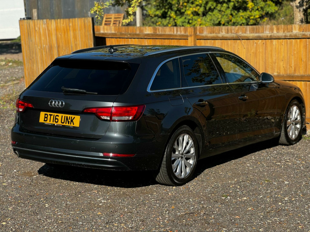 This 2016 Audi A4 Avant TDI SE offers an exceptional blend of efficiency and comfort, making it a superb choice for discerning drivers. Powered by a 2.0 litre diesel engine, this Euro 6 compliant model boasts impressive fuel economy, achieving an outstanding 71 miles per gallon. The SE trim level ensures a well equipped experience, featuring practical additions such as rear parking sensors for easier manoeuvring and a Bluetooth interface for seamless mobile phone connectivity. You can also expect the convenience of Xenon headlights, a light sensor for automatic headlight activation, and deluxe 3 zone climate control to maintain the perfect cabin temperature for all occupants.This Audi A4 Avant TDI SE stands out with its remarkably low CO2 emissions and its placement in a low insurance group, indicating lower running costs compared to many similar vehicles. These highlights, combined with its efficient 2.0 litre diesel engine and the premium SE specification, present a compelling package for those seeking a refined and economical driving experience. v power socket, 17in alloy wheels - 10-spoke crystal design, abs - anti-lock braking system, asr - anti slip regulation, aux-in socket, acoustic windscreen, air inlets - titan black with two horizontal inlays in chrome, airbags - curtain, airbags - driver, airbags - front passenger, airbags - front side, aluminium roof rails, anti theft locking wheel bolts, anti-theft alarm, audi drive select, auto-dimming rear-view mirror, automatic wipers with rain sensor, b-pillar trims and triangular rear door trim in high-gloss black, body coloured door mirrors, cd player, cloth headlining, cruise control with speed limiter, cupholders, dab digital radio, dis - drivers information system with display screen monochrome tft 5in, deluxe 3-zone climate control, display screen - 7in mmi colour display, door handles - chrome inserts, door mirrors - electrically adjustable and heated with built-in led indicators, door sill trims with aluminium inlay, edl - electronic differential lock, esc - electronic stabilisation control, electric load area cover, electric windows - front and rear, electromechanical parking brake, electromechanical power steering, emergency braking function, exhaust tailpipe - chrome plated, first aid kit, front centre armrest, front passenger airbag deactivation switch, front and rear floor mats, front and rear roof module, fuel computer, glovebox - illuminated, head restraints - front adjustable, headlights - automatic adjustment, headlights - light sensor, headlights - xenon, heat insulating glass - windscreen and side windows, high gloss package, isofix child seat mounting for front passenger with airbag deactivation, isofix child seat preparation for rear seats with top tether, inlays - aluminium ellipse - silver, interior lighting, keyless go, led daytime running lights, led rear fog lights and licence plate led illumination, luggage compartment - lighting, luggage compartment mat, mmi controller with integrated joystick function, mmi radio plus with smartphone interface, manual height adjustment for front seats, mobile telephone preparation - bluetooth interface, model and engine technology badges at rear, multi collision brake assist, non-smoking package, parking sensors - rear, passive door warning lights, pop-up bonnet for pedestrian protection, power operated tailgate, pre-sense city, preparation for mmi navigation, radiator grille - titan black with inlays in chrome, rear centre armrest, rear diffuser clip in chrome, rear diffuser in titan black matt, remote boot release, remote central locking, roof frame and window trims in aluminium, sdxc card reader, seat belt monitoring, seats - split folding rear - 40-20-40, space saver spare wheel, speakers x8, sport suspension, steering wheel - 3-spoke leather, steering wheel - height and reach adjustable, steering wheel - multi-function, sun visors - with vanity mirror, tailgate lighting, tool kit and car jack, towbar preparation, tyre pressure warning light, usb connection x2, variable restraint system, voice control, warning triangle