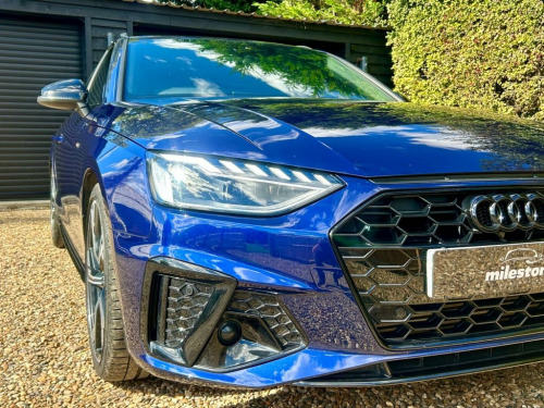 Milestone are pleased to have this 2024 Audi A4 Avant TFSI Black Edition presents a superb ownership proposition, having been meticulously maintained by just one owner from new. This Euro 6 compliant model boasts a refined 2.0 litre petrol engine, offering a smooth and efficient driving experience. The Black Edition trim enhances its sophisticated appearance, while the interior is designed for comfort and convenience. You'll appreciate the Deluxe 3 Zone Electronic Climate Control, ensuring everyone in the cabin enjoys their preferred temperature, and the Heated Front Seats provide welcome warmth on colder days. Navigating and staying connected is effortless with the Audi Smartphone Interface, seamlessly integrating your Android Auto or Apple CarPlay. The Light and Rain Sensor automatically adjusts headlights and wipers, allowing you to focus on the road ahead. Furthermore, the Parking System Plus, with sensors at both the front and rear, makes manoeuvring into tight spaces significantly easier. These carefully selected features demonstrate how this Audi A4 Avant is equipped to offer a superior driving experience compared to other vehicles in its class. Storage and Luggage Package, High Multifunction 3-Spoke Leather Trimm, 19in Alloy Wheels - 5-Arm Flag Design - , 2 USB Charging Ports, 4-Way Electric Lumbar Support, 6-Airbag System, 8 Passive Loudspeakers, Anti Theft Locking Wheel Bolts, Anti-Theft Alarm, Attention and Drowsiness Assist, Audi Beam, Audi Connect Infotainment Services (36 M, Audi Connect Safety and Service, Audi Drive Select, Audi Rings in Black and Black Model Badg, Audi Smartphone Interface, Audi Virtual Cockpit, Auto-Dimming Rear-View Mirror, Automatic Start-Stop with Coasting Funct, Black Styling Pack, Bluetooth Interface, Camera-Based Traffic Sign Recognition, Cloth Headlining in Black, Contrast Stitching on Seats - Stee