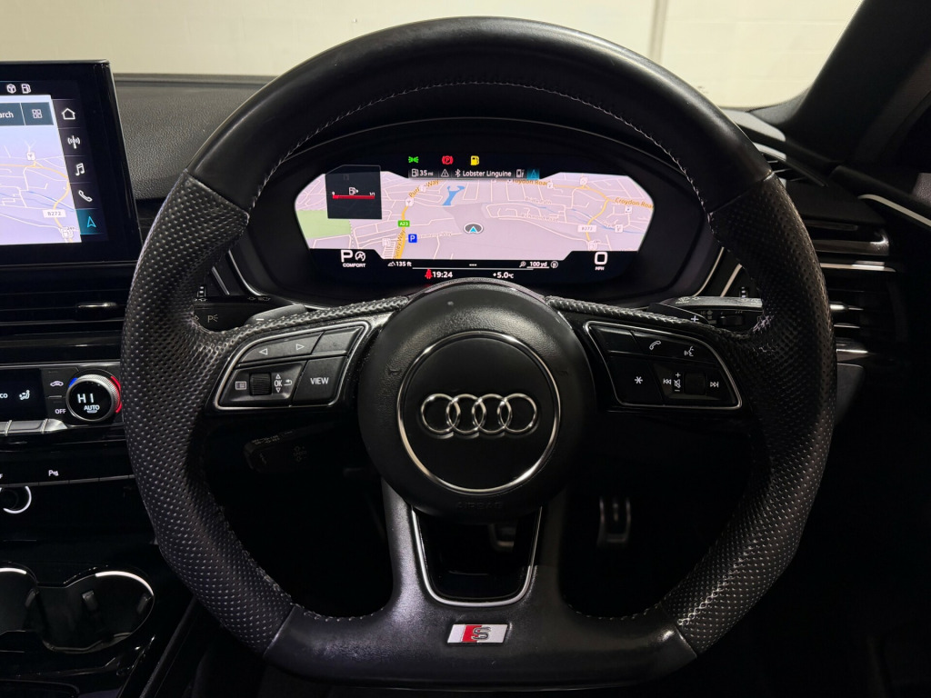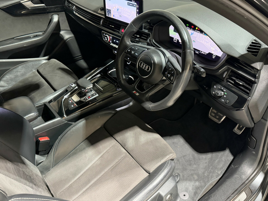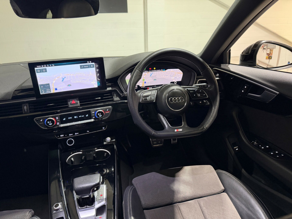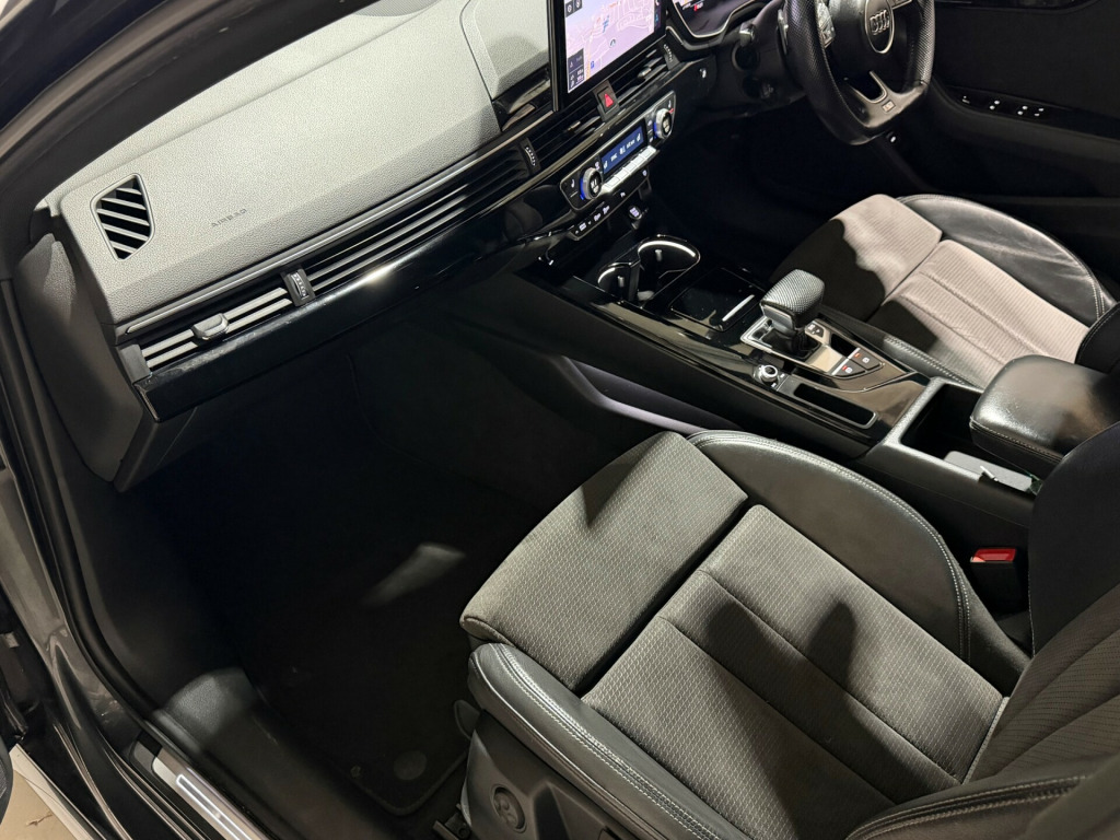 This 2019 Audi A4 Avant 2.0 TFSI 35 Black Edition Estate 5dr Petrol S Tronic Euro 6 (s/s) (150 ps) is the perfect car for those who enjoy both style and practicality. With just 32000 miles on the clock, this Estate vehicle comes with 5 seats and 5 doors, making it suitable for family trips or daily commuting. The petrol engine is efficient and reliable, with MOT valid until 26/06/2026, and being ULEZ compliant, it's also environmentally friendly. The sleek exterior includes 19in Alloy Wheels, Aluminium Roof Rails, and Body Coloured Door Mirrors, adding to its overall appeal. Don't miss the chance to own this stunning and high-performing Audi A4 Avant. in alloy wheels - 8.5j 5-arm rotor design matt titanium look - diamond cut, aluminium roof rails, anti theft locking wheel bolts, body coloured door mirrors, body coloured side sill trims, door handles - body coloured, door mirrors - folding with auto-dimming, electric windows - front, front spoiler lip in body colour, high gloss package, privacy glass, radiator grille with honeycomb structure in grained matt black, s line rear diffuser in matt titanium black with trim strip in matt aluminium silver, s line front and rear bumpers and side skirts, side air inlets in grained matt black with inlay in matt aluminium silver, tailpipe trims in matt aluminium silver, titanium black styling pack, tyre repair kit, windscreen with acoustic glazing, 2 usb charging ports, 8 passive loudspeakers, audi connect infotainment services (36 month subscription from new), audi connect safety and service, audi smartphone interface, bluetooth interface, dab digital radio reception, mmi navigation plus including mmi touch, 4-way electric lumbar support, audi virtual cockpit, auto-dimming rear-view mirror, cloth headlining in black, contrast stitching on seats - steering wheel and gear-lever gaiter, deluxe 3-zone electronic climate control, electric load area cover, email - calendar and text messages can be displayed on your vehicles mmi, flat-bottomed 3-spoke leather high multi-function sport steering wheel, front centre armrest, front sports seats, gear knob - perforated leather black, heated front seats, illuminated door sill trims with s logo, inlays - piano finish - black, keyless go, led interior lighting pack, manual seat adjustment, pedals and footrest - stainless steel, power operated tailgate, split-folding rear seat bench in 3 parts - 40-20-40 with rear centre armrest, steering column - rake and reach adjustment, steering wheel - gear shift paddles, tool kit, 6-airbag system, anti-theft alarm, esc - electronic stabilisation control inc abs - asr and edl, first aid kit and warning triangle, hill hold assist, isofix child seat mounting and top tether, multi collision brake assist, pop-up bonnet for pedestrian protection, pre-sense city, seat belt monitoring, audi drive select, automatic start-stop with coasting functionality and efficiency programme, cruise control system with speed limiter, electromechanical power steering, parking system plus - front and rear sensors, rear-view camera, sport suspension, voice control, headlights - high-beam assist, led daytime running lights, led headlights with led rear lights and dynamic rear indicators, light and rain sensor
