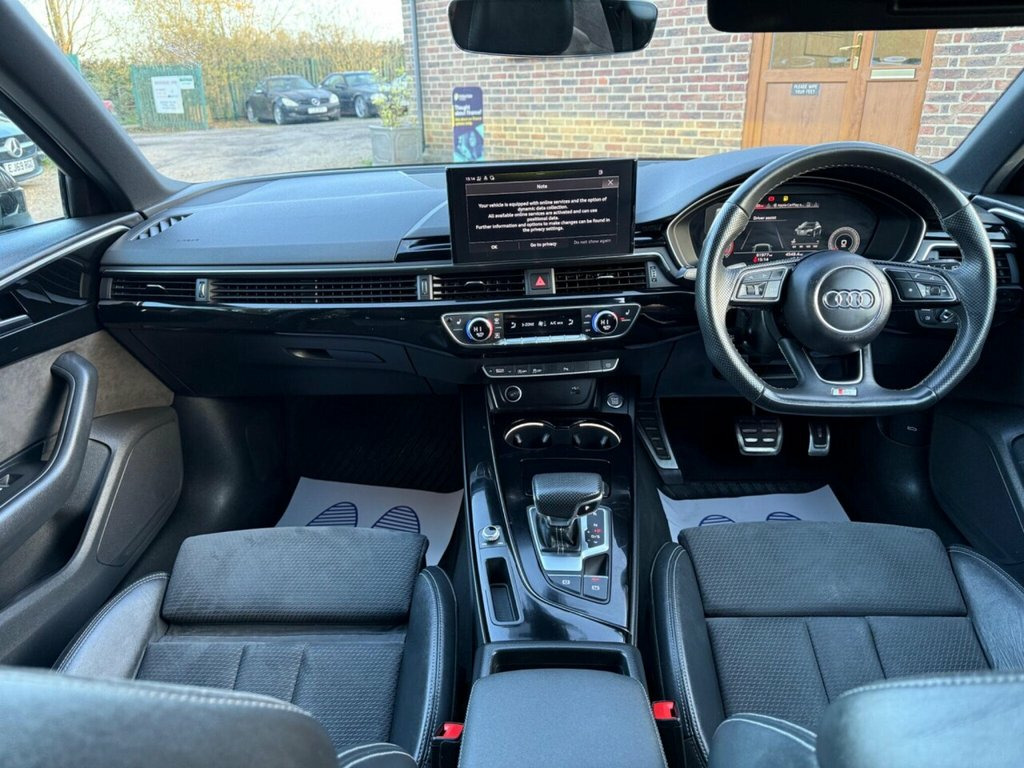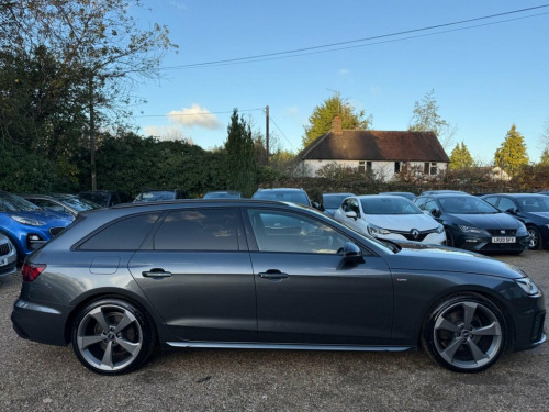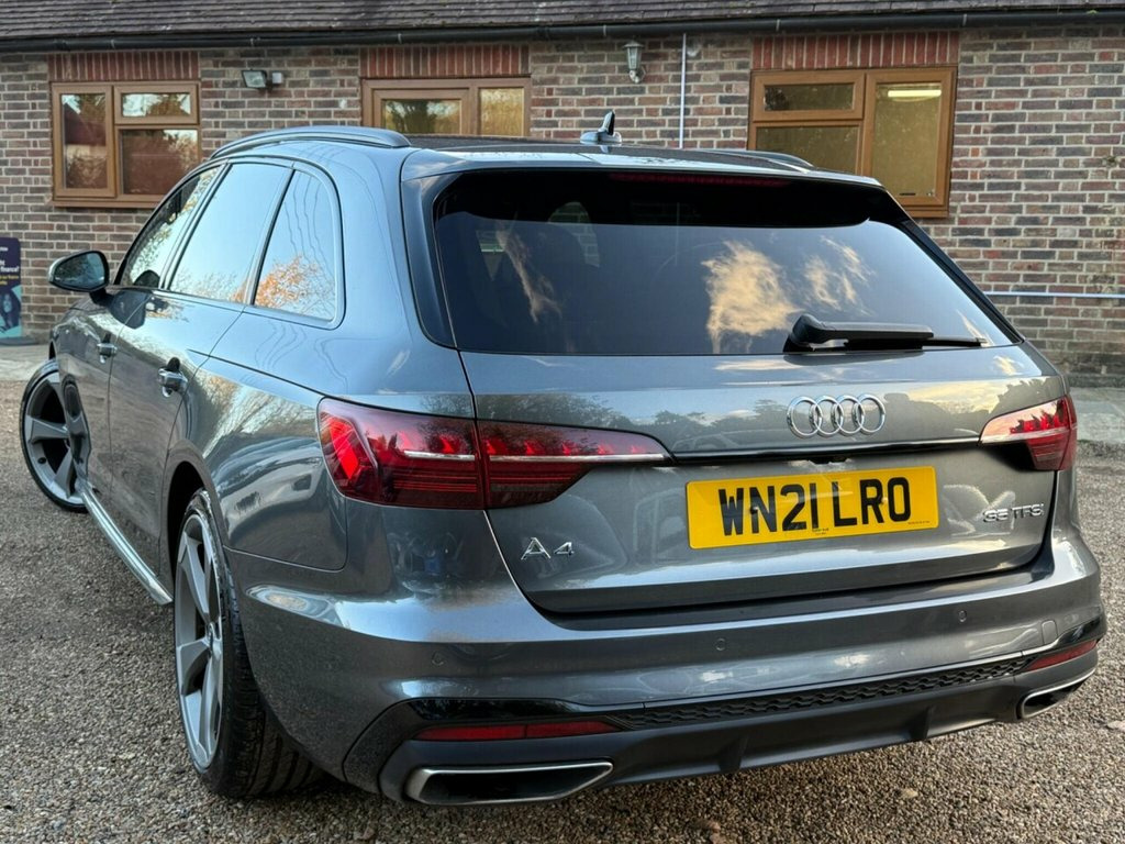 This 2021 Audi A4 Avant TFSI Black Edition boasts a clear vehicle history, offering you peace of mind. This stylish estate car is powered by a 2.0 litre Euro 6 petrol engine, ensuring efficient performance. The Black Edition trim level adds a touch of sophistication, and you'll appreciate the convenience of the Audi Smartphone Interface, which seamlessly integrates your Android Auto or Apple CarPlay. Navigating tight spaces is made easy with the Parking System Plus, featuring front and rear sensors, complemented by a rear view camera. Further enhancing your driving experience are the automatic headlights activated by the light and rain sensor, and the Deluxe 3-zone electronic climate control for personalised comfort. These features, combined with the vehicle's Euro 6 emissions standard and its well maintained provenance, position this Audi A4 Avant as a superior choice for those seeking a premium and practical estate car. 19in Alloy Wheels - 8.5J 5-Arm Rotor Des, 2 USB Charging Ports, 4-Way Electric Lumbar Support, 6-Airbag System, 8 Passive Loudspeakers, Aluminium Roof Rails, Anti Theft Locking Wheel Bolts, Anti-Theft Alarm, Audi Connect Infotainment Services (36 M, Audi Connect Safety and Service, Audi Drive Select, Audi Smartphone Interface, Audi Virtual Cockpit, Auto-Dimming Rear-View Mirror, Automatic Start-Stop with Coasting Funct, Bluetooth Interface, Body Coloured Door Mirrors, Body Coloured Side Sill Trims, Cloth Headlining in Black, Contrast Stitching on Seats - Steering W, Cruise Control System with Speed Limiter, DAB Digital Radio Reception, Deluxe 3-Zone Electronic Climate Control, Door Handles -