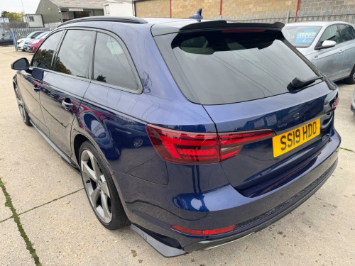 HPI CLEAR. 6 MONTHS WARRANTY. FULL AUDI MAIN DEALER SERVICE HISTORY. This 2019 Audi A4 Avant TFSI Black Edition offers a compelling blend of style and practicality, boasting a Euro 6 compliant 2.0 litre petrol engine. As a Black Edition model, it features striking LED headlights with dynamic rear indicators, complemented by the convenience of a Bluetooth interface for seamless connectivity. Inside, youll find Deluxe 3 zone electronic climate control to ensure comfort for all occupants, and the Light and Rain Sensor automatically manages your headlights. Parking is made effortless with the Parking System Plus, which includes front and rear sensors. This Audi A4 Avant stands out with its low CO2 emissions, indicating a more environmentally conscious choice compared to many similar vehicles. Furthermore, its low insurance group rating suggests that running costs could be more affordable. These factors, combined with the sophisticated Black Edition styling and the array of advanced features, make this A4 Avant a well rounded and attractive option.