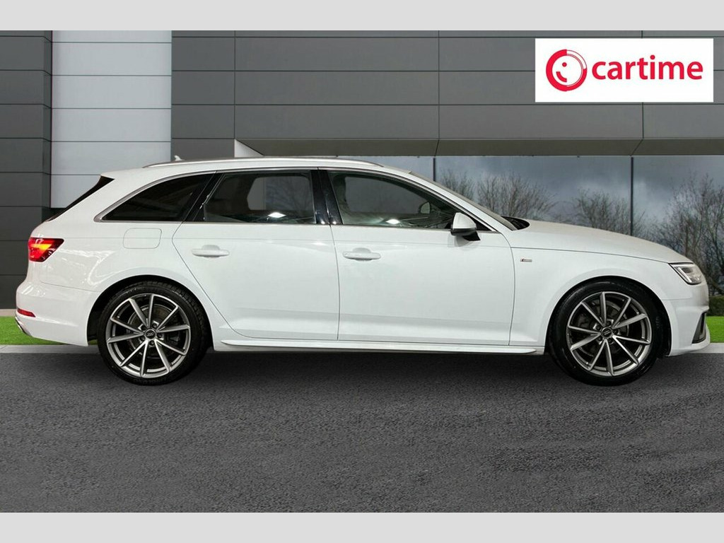 This 2019 Audi A4 Avant is a stylish and practical estate car that's ready for the road with its MOT valid until December 2025. As a TFSI S line model with the S line trim, it combines sporty aesthetics with everyday usability. Under the bonnet is a 2.0L petrol engine. The vehicle is equipped with several features designed to enhance comfort and convenience, including a light and rain sensor for automatic headlight activation and windscreen wiping, a Bluetooth interface for hands-free connectivity, and Parking System Plus with front and rear sensors to assist with maneuvering. The LED headlights, complete with dynamic rear indicators, not only provide excellent visibility but also add to the car's modern appeal. Heated front seats ensure a comfortable driving experience, especially on colder days. One of the key advantages of this Audi A4 Avant is its Euro 6 emission class, meaning lower emissions. This makes it a more environmentally conscious choice compared to older vehicles. 19in Alloy Wheels - 8.5J 5-Arm Torsio De, 2 USB Charging Ports, 3-spoke Leather High Multi-function Spor, 4-Way Electric Lumbar Support, 6-Airbag System, 8 Passive Loudspeakers, Aluminium Roof Rails, Anti Theft Locking Wheel Bolts, Anti-Theft Alarm, Audi Connect Infotainment Services - 36 , Audi Connect Safety and Service, Audi Drive Select, Audi Smartphone Interface, Audi Virtual Cockpit, Auto-Dimming Rear-View Mirror, Automatic Start-Stop with Coasting Funct, Bluetooth Interface, Body Coloured Door Mirrors, Body Coloured Side Sill Trims, Cloth Headlining in Black, Contrast Stitching on Seats - Steering W, Cruise Control System with Speed Limiter, DAB Digital Radio Reception, Deluxe 3-Zone