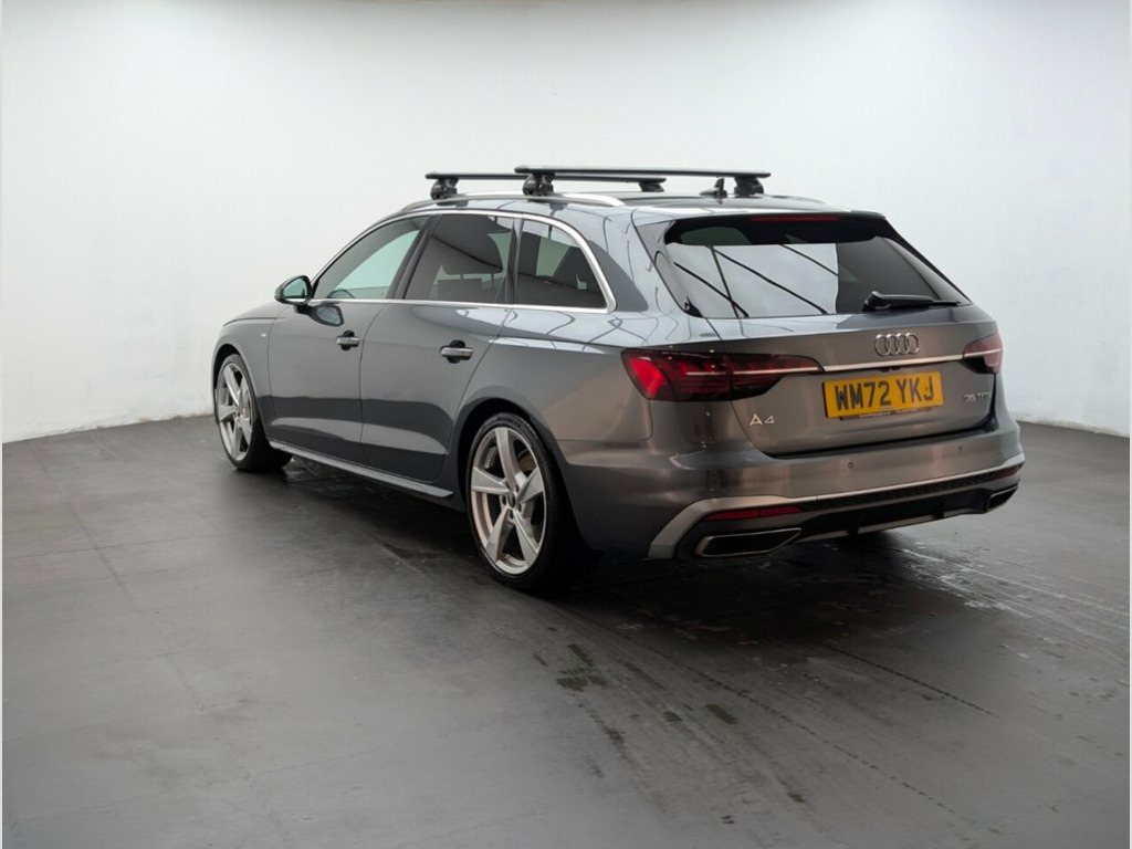 19" alloys, Rear view camera, Heated front seats, Cruise control and Bluetooth. Last serviced on the 10.04.2025 at 28530 miles. This 2023 Audi A4 Avant TFSI S line is a superb example, having had only one owner since new. This Euro 6 compliant model boasts a 2.0 litre petrol engine and comes with the desirable S line trim. Inside, you'll find comfort and convenience with heated front seats and the Audi Smartphone Interface, which seamlessly integrates your phone with both Android Auto and Apple CarPlay. For enhanced visibility and safety, it features LED headlights with dynamic rear indicators, complemented by a light and rain sensor that automatically controls the headlights. Connectivity is also made easy with the built in Bluetooth interface. The Audi A4 Avant TFSI S line offers a refined driving experience, and this particular vehicle stands out with its low insurance group rating, making it an economical choice. The combination of LED lighting, including automatic headlight activation, and the intuitive smartphone integration highlights how this Audi is designed to offer a superior and more connected journey compared to other vehicles in its class. Its single owner provenance further assures you of its well cared for condition. 19in Alloy Wheels - 8.5J 5-Arm Torsio De, 2 USB Charging Ports, 3-spoke Leather High Multi-function Spor, 4-Way Electric Lumbar Support, 6-Airbag System, 8 Passive Loudspeakers, Aluminium Roof Rails, Anti Theft Locking Wheel Bolts, Anti-Theft Alarm, Audi Connect Infotainment Services (36 M, Audi Connect with Amazon Alexa Integrati, Audi Drive Select, Audi Smartphone Interface, Audi Virtual Cockpit, Auto-Dimming Rear-View Mirror, Automatic Start-Stop with Coasting Funct, Bluetooth Interface, Body Coloured Door Mirrors, Body Coloured Side Sill Trims, Cloth Headlining in Black, Contrast Stitching on Seats - Steering W, Cruise Control System with Speed Limiter, DAB Digital Radio Reception, Delux