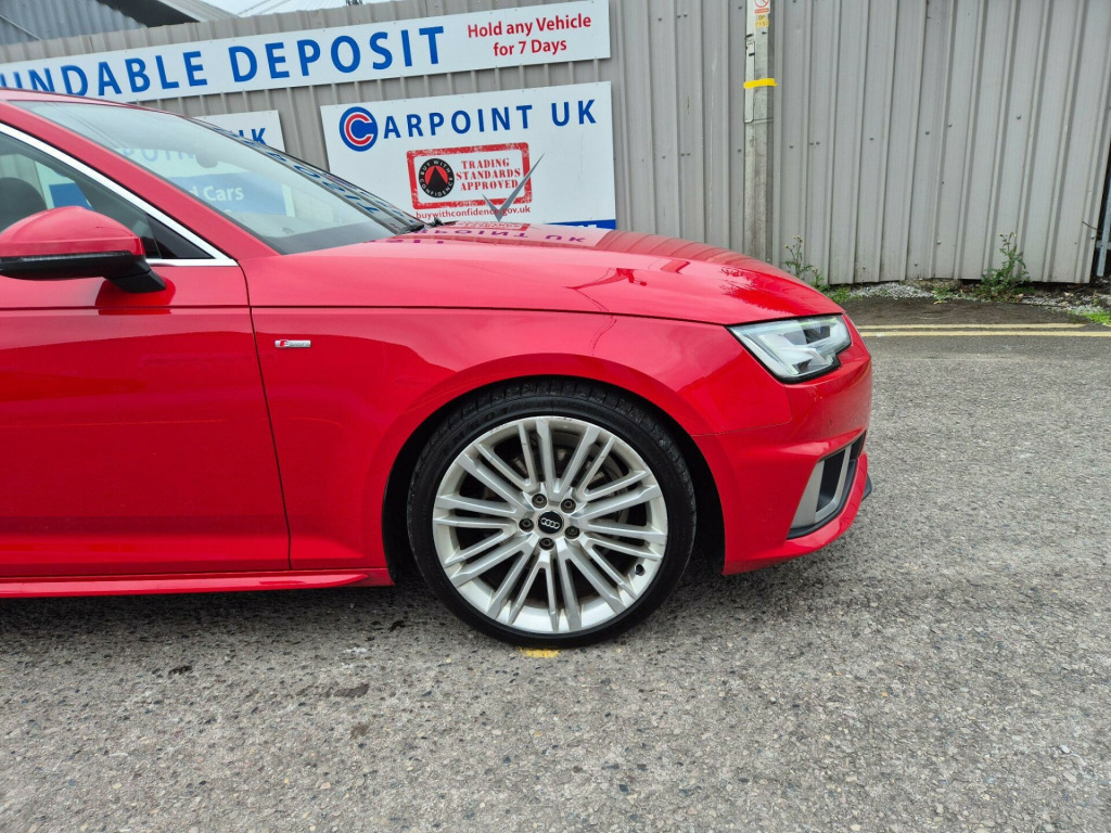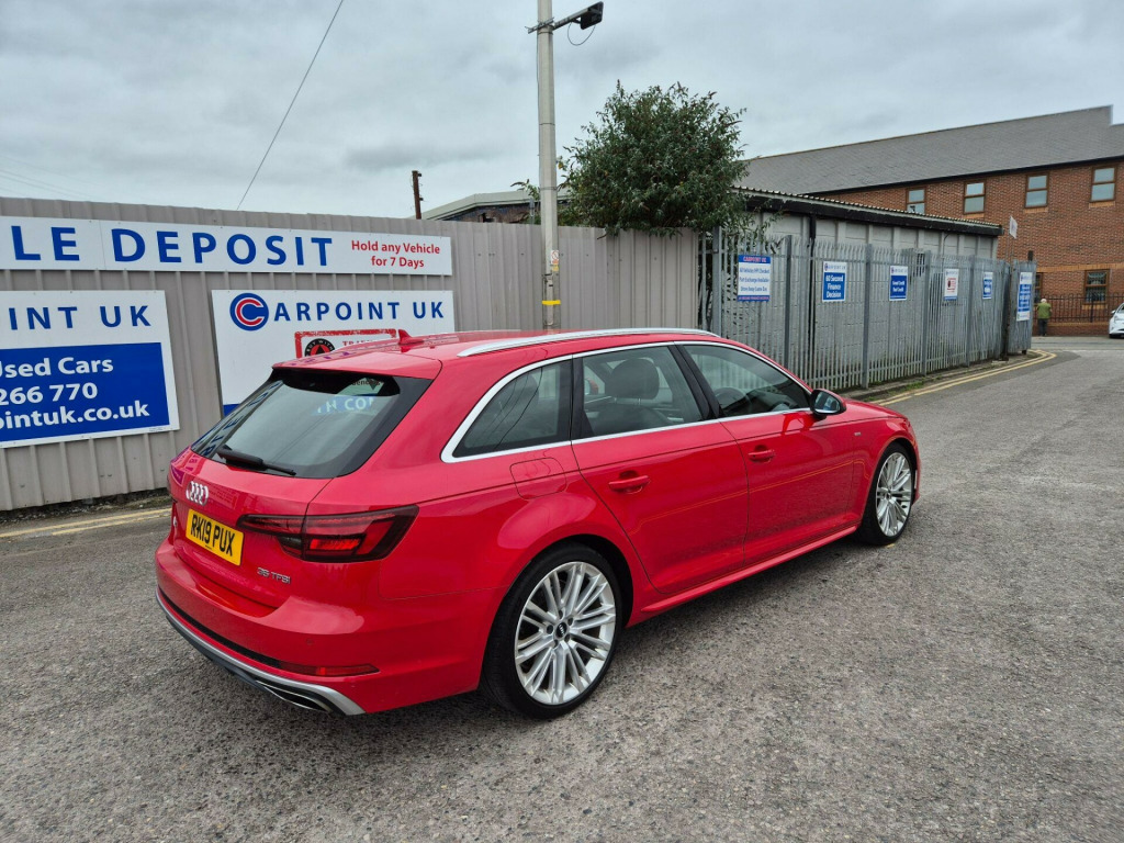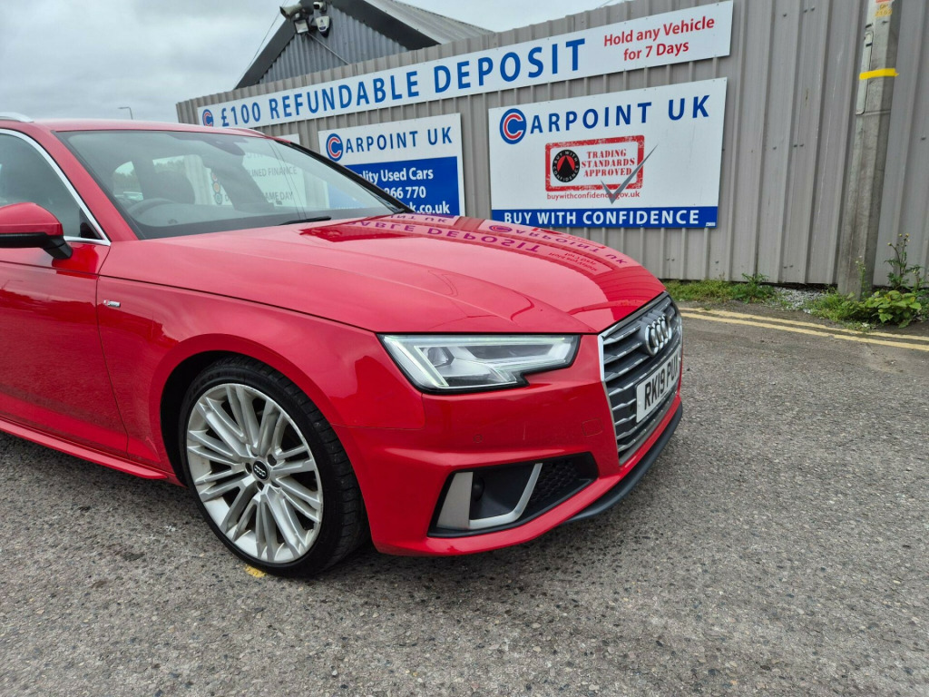 This 2019 Audi A4 Avant TFSI S line boasts a full service history, with its last service completed on 2025-10-17 at 60405 miles, and an MOT valid until October 2026, offering excellent peace of mind. This Euro 6 compliant model features a 2.0L petrol engine and the desirable S line trim. Enhancing your driving experience are features such as cruise control with speed limiter, heated front seats for those colder journeys, and advanced LED headlights with dynamic rear indicators for improved visibility and a modern aesthetic. The Parking System Plus, with front and rear sensors, makes manoeuvring effortless, while the light and rain sensor automatically adjusts headlights and wipers, ensuring you're always prepared for changing conditions.The Audi A4 Avant TFSI S line is also in a low insurance group, which can help to reduce your annual running costs, making it a more economical choice compared to similar vehicles. This combination of comprehensive provenance, advanced technology, and practical features makes this A4 Avant a compelling option for those seeking a premium estate car that is both stylish and functional.. 19in Alloy Wheels - 10-V Spoke Design, 2 x USB Charging Ports and 1 x AUX-IN, 4-Way Electric Lumbar Support, 6-Airbag System, ABS - Anti-Lock Braking System, Aluminium Roof Rails, Anti Theft Locking Wheel Bolts, Anti-Theft Alarm, Audi Connect Safety and Service - e-call, Audi Drive Select, Audi Sound System, Auto-Dimming Rear-View Mirror, Bluetooth Interface, Body Coloured Door Mirrors, Chrome-Plated Trims for Exhaust System, Cloth Headlining in Black, Contrast Stitching on Steering Wheel and Gear Lever Gaiter, Cruise Control with Speed Limiter, DAB Digital Radio, Deluxe 3-Zone Electronic Climate Control, Door Mirrors - Electrically Adjustable and Heated with Built-in LED Indicators, Door Mirrors - Electrically Folding, Driver Information System - 7in Colour Display, ESC - Electronic Stabilisation Control inc ABS - ASR and EDL, Electric Load Area Cover, Electric Windows - Front and Rear, Electromechanical Parking Brake, Electromechanical Power Steering, First Aid Kit and Warning Triangle, Front Centre Armrest, Front and Rear Floor Mats, Gear Lever Knob in Black Perforated Leather, Heated Front Seats, High Gloss Package, High Multifunction S Line 3-Spoke Leather Trimmed Sport Steering Wheel with Grips in Perforated Leather, High-Beam Assist, ISOFIX Child Seat Mounting and Top Tether, Illuminated Door Sill Trims with S Logo, Inlays - Matt Brushed Aluminium, Interior Lighting, Keyless Go, LED Headlights with LED Rear Lights and Dynamic Rear Indicators, Light and Rain Sensor, Luggage Compartment Mat, MMI Navigation - SD Card Based, MMI Radio Plus with Smartphone Interface, Manual Height Adjustment for Front Seats, Multi Collision Brake Assist, Non-Smoking Package, Parking System Plus, Pedals and Footrest - Stainless Steel, Pop-Up Bonnet for Pedestrian Protection, Power Operated Tailgate, Pre-Sense City, Radiator Grille - Twilight Grey Matt with Inlays in Chrome, Rear Diffuser in Twilight Grey Matt, Rear Grille - Black Grained, S Line Badges on Front Wings, S line Front and Rear Bumpers and Side Skirts, S line Roof Edge Spoiler, Seat Belt Monitoring, Side Air Inlet Grille in Titan Black Matt with Two Side Inlays in Chrome, Split-Folding Rear Seat Bench in 3 Parts - 40-20-40 with Rear Centre Armrest, Sport Suspension, Sun Visors - with Vanity Mirror, Tailpipes in Chrome, Tool Kit and Car Jack, Towbar Preparation, Tyre Pressure Warning Light, Tyre Repair Kit, Variable Restraint System, Windscreen with Acoustic Glazing, Tow Bar - Folding. Full service history