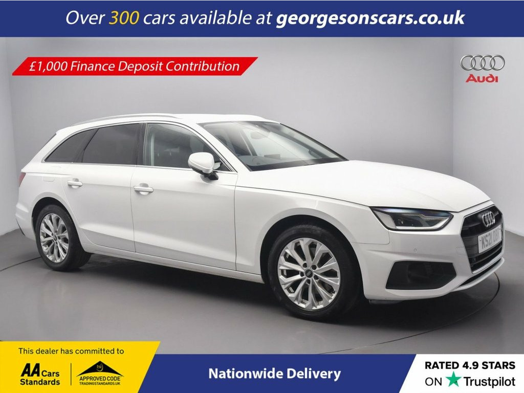 * £1000 FINANCE CONTRIBUTION * The Audi A4 Avant 35 TFSI Technik combines a lively 2.0-litre turbo petrol engine with 150hp, delivering 0-62mph in 8.9 seconds and up to 47.9mpg in this front-wheel-drive setup with a precise 6-speed manual gearbox. The Technik trim offers premium practicality with 17-inch alloys and a high-grade interior. With one owner and four services, this A4 Avant is in superb condition. Enjoy the Bang & Olufsen 3D sound system and ambient lighting, while integrated satellite navigation, Apple CarPlay, Bluetooth and DAB radio keep you connected. Parking is effortless with 360-degree camera, reverse camera and parking sensors. Stay comfortable with 3-zone climate control and heated front seats. Cruise control with speed limiter, hill assist, selectable drive modes and the multifunction steering wheel deliver relaxed, refined touring every day. The spacious five-door estate includes a huge 495-litre boot (expandable to 1,495 litres. Contact us today to test drive this fully-loaded, one-owner Technik estate! 17in Alloy Wheels - 7.5J 10-Spoke Crysta, 2 USB Charging Ports, 3-Spoke Leather High Multifunction Sport, 4-Way Electric Lumbar Support, 6-Airbag System, 8 Passive Loudspeakers, Aluminium Roof Rails, Anti Theft Locking Wheel Bolts, Anti-Theft Alarm, Audi Connect Infotainment Services (36 M, Audi Connect with Amazon Alexa Integrati, Audi Drive Select, Audi Smartphone Interface, Audi Virtual Cockpit, Auto-Dimming Rear-View Mirror, Automatic Start-Stop with Coasting Funct, Bluetooth Interface, Body Coloured Door Mirrors, Comfort Dynamic Suspension, Cruise Control System with Speed Limiter, DAB Digital Radio Reception, Deluxe 3-Zone Electronic Climate Control, Door Mirrors - Folding with Auto-Di