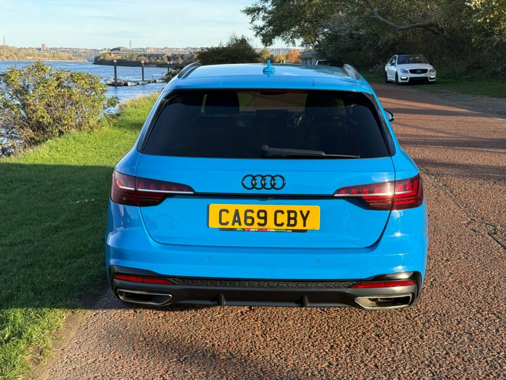 STUNNING AUDI A4 ESTATE BLACK EDITION IN BLUE WITH FULL BLACK PACK INCLUDING GRILLE, SPLITTER, BADGES, PRIVACY GLASS, IT ALSO COMES WITH 19" ALLOY WHEELS, ELECTRIC TAILGATE, FLAT BOTTOM MULTI FUNCTIONING STEERING WHEEL, DIGI DASH, CRUISE CONTROL, HEATED SEATS, DUAL AIR CON, APPLE CAR PLAY, FRONT AND REAR SENSORS, REVERSING CAMERA, AUTO LIGHTS, AUTO WIPERS, PART LEATHER SEATS WITH S LINE LOGO AND LOTS MORE, WE WILL ALSO PROVIDE YOU WITH A FRESH SERVICE, MOT AND WARRANTY. 19in Alloy Wheels - 8.5J 5-Arm Rotor Des, 2 USB Charging Ports, 4-Way Electric Lumbar Support, 6-Airbag System, 8 Passive Loudspeakers, Aluminium Roof Rails, Anti Theft Locking Wheel Bolts, Anti-Theft Alarm, Audi Connect Infotainment Services (36 M, Audi Connect Safety and Service, Audi Drive Select, Audi Smartphone Interface, Audi Virtual Cockpit, Auto-Dimming Rear-View Mirror, Automatic Start-Stop with Coasting Funct, Bluetooth Interface, Body Coloured Door Mirrors, Body Coloured Side Sill Trims, Cloth Headlining in Black, Contrast Stitching on Seats - Steering W, Cruise Control System with Speed Limiter, DAB Digital Radio Reception, Deluxe 3-Zone Electronic Climate Control, Door Handles -
