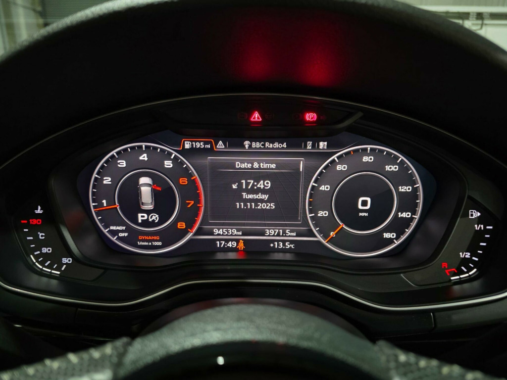 Service History, HPI Clear, Excellent condition,1 Previous OwnerMMI Navigation - SD Card BasedMMI Radio Plus with Smartphone InterfaceParking System PlusAudi Sound SystemHeated Front Seats2 x USB Charging Ports and 1 x AUX-IN4-Way Electric Lumbar SupportAnti Theft Locking Wheel BoltsAnti-Theft AlarmAudi Connect Safety and Service - e-callAudi Drive SelectBluetooth InterfaceChrome-Plated Trims for Exhaust SystemCloth Headlining in BlackCruise Control System with Freewheeling Capability and Speed LimiterDAB Digital RadioDeluxe 3-Zone Electronic Climate ControlDoor Mirrors - Electrically Adjustable and Heated with Built-in LED IndicatorsDoor Mirrors - Electrically FoldingDoor Mirrors - High-Gloss BlackDriver Information System - 7in Colour DisplayElectric Load Area CoverElectric Windows - Front and RearElectromechanical Parking BrakeElectromechanical Power SteeringFlat Bottomed 3-Spoke Leather High Multi-Function Steering WheelFront Centre ArmrestFront and Rear Air Intakes in Titanium BlackFront and Rear Floor MatsHigh Gloss Black Roof RailsInterior LightingKeyless GoLED Headlights with LED Rear Lights and Dynamic Rear IndicatorsLight and Rain SensorLuggage Compartment MatMulti Collision Brake AssistPedals and Footrest - Stainless SteelPop-Up Bonnet for Pedestrian ProtectionPrivacy Glass and Front Acoustic GlazingRadiator Grille and Frame in Titanium BlackRear Diffuser in Twilight Grey MattRear Grille - Black GrainedS Line Badges on Front WingsS Style Rear Spoiler in High Gloss BlackS line Front and Rear Bumpers and Side SkirtsS line Roof Edge SpoilerSport SuspensionTailpipes in Chromeairbags, ABS, PAS, Spare key, 19in Alloy Wheels - 5-Arm Rotor Matt Titanium Look - Diamond Cut in alloy wheels - 5-arm rotor matt titanium look - diamond cut, 2 x usb charging ports and 1 x aux-in, 4-way electric lumbar support, 6-airbag system, abs - anti-lock braking system, anti theft locking wheel bolts, anti-theft alarm, audi connect safety and service - e-call, audi drive select, audi sound system, auto-dimming rear-view mirror, bluetooth interface, chrome-plated trims for exhaust system, cloth headlining in black, cruise control system with freewheeling capability and speed limiter, dab digital radio, deluxe 3-zone electronic climate control, door mirrors - electrically adjustable and heated with built-in led indicators, door mirrors - electrically folding, door mirrors - high-gloss black, driver information system - 7in colour display, esc - electronic stabilisation control inc abs - asr and edl, electric load area cover, electric windows - front and rear, electromechanical parking brake, electromechanical power steering, first aid kit and warning triangle, flat bottomed 3-spoke leather high multi-function steering wheel, front centre armrest, front and rear air intakes in titanium black, front and rear floor mats, gear lever knob in black perforated leather, heated front seats, high gloss black roof rails, high gloss package, high-beam assist, isofix child seat mounting and top tether, illuminated door sill trims with s logo, inlays - piano finish - black, interior lighting, keyless go, led headlights with led rear lights and dynamic rear indicators, light and rain sensor, luggage compartment mat, mmi navigation - sd card based, mmi radio plus with smartphone interface, manual height adjustment for front seats, multi collision brake assist, non-smoking package, parking system plus, pedals and footrest - stainless steel, pop-up bonnet for pedestrian protection, power operated tailgate, pre-sense city, privacy glass and front acoustic glazing, radiator grille and frame in titanium black, rear diffuser in twilight grey matt, rear grille - black grained, s line badges on front wings, s style rear spoiler in high gloss black, s line front and rear bumpers and side skirts, s line roof edge spoiler, seat belt monitoring, split-folding rear seat bench in 3 parts - 40-20-40 with rear centre armrest, sport suspension, sun visors - with vanity mirror, tailpipes in chrome, tool kit and car jack, towbar preparation, tyre pressure warning light, tyre repair kit, variable restraint system, window surrounds in titanium black, windscreen with acoustic glazing
