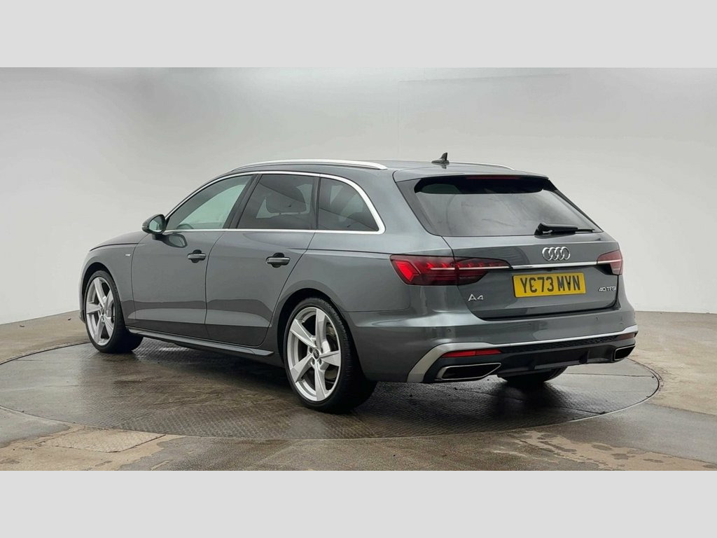 This 2023 Audi A4 Avant TFSI S line boasts a pristine provenance, having been owned by just one careful keeper and benefiting from an MOT valid until October 2026, with a clear vehicle history check. This stylish estate car features a responsive 2.0 litre petrol engine, meeting Euro 6 emission standards. Inside, you'll find comfort and convenience with heated front seats, while the Parking System Plus, complete with front and rear sensors and a rear view camera, makes manoeuvring effortless. Stay connected and entertained with the Audi Smartphone Interface, offering seamless integration for both Android Auto and Apple CarPlay, all illuminated by striking LED headlights and dynamic rear indicators. Experience the dynamic performance of this A4 Avant, capable of accelerating from 0 to 60mph in a swift 7.3 seconds, a testament to its refined engineering. This impressive acceleration, combined with the comprehensive S line trim and the array of advanced features, positions this Audi A4 Avant as a superior choice for those seeking a blend of performance, technology, and practicality in a premium estate car. 19in Alloy Wheels - 8.5J 5-Arm Torsio De, 2 USB Charging Ports, 3-spoke Leather High Multi-function Spor, 4-Way Electric Lumbar Support, 6-Airbag System, 8 Passive Loudspeakers, Aluminium Roof Rails, Anti Theft Locking Wheel Bolts, Anti-Theft Alarm, Attention and Drowsiness Assist, Audi Connect Infotainment Services (36 M, Audi Connect Safety and Service, Audi Drive Select, Audi Smartphone Interface, Audi Virtual Cockpit, Auto-Dimming Rear-View Mirror, Automatic Start-Stop with Coasting Funct, Bluetooth Interface, Body Coloured Door Mirrors, Camera-Based Traffic Sign Recognition, Cloth Headlining in Black, Contrast Stitching on Seats - Steering W, Cruise Control System with Speed Limiter, DA