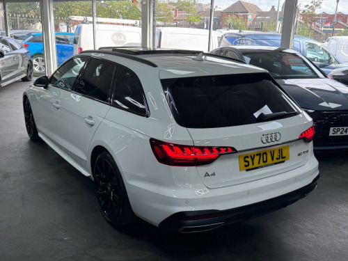 (70 REGISTRATION) AUDI A4 Avant 2.0 TFSI 40 S LINE S-TRONIC EURO 6| NEW SHAPE | VIRTUAL DASH| PANORAMIC ROOF| UPGRADED 19” ALLOYS| SATNAV| DYNAMIC INDICATORS | HALF LEATHER INTERIOR | HEATED SEATS| REVERSE CAMERA| DRIVER ASSISTANCE TOUR PACKAGE| PARKING SENSORS| JUST BEEN SERVICED | AUDI SERVICE HISTORY | 12 MONTHS MOT| 1 FORMER KEEPER|PRIVACY GLASS| BLACK EDITION STYLING| DAB RADIO | KEYLESS GO/START| FINANCE ARRANGED £0 DEPOSIT NEEDED| PART EXCHANGE WELCOME | LOW MONTHLY PAYMENTS | APR RATES FROM 9.9 | LOW MONTHLY PAYMENTS |PCP AND HP FINANCE DEALS AVAILABLE | RAC APPROVED DEALERSHIP| HIGHLY RATED FOR OUR CUSTOMER SERVICE OVER 300 5 STAR REVIEWS ON AUTOTRADER |. 19in Alloy Wheels - 8.5J 5-Arm Torsio Design, 2 USB Charging Ports, 3-spoke Leather High Multi-function Sport Steering Wheel with Grips in Perforated Leather with S Badging, 4-Way Electric Lumbar Support, 6-Airbag System, 8 Passive Loudspeakers, Aluminium Roof Rails, Anti Theft Locking Wheel Bolts, Anti-Theft Alarm, Audi Connect Infotainment Services (36 Month Subscription From New), Audi Connect Safety and Service, Audi Drive Select, Audi Smartphone Interface, Audi Virtual Cockpit, Auto-Dimming Rear-View Mirror, Automatic Start-Stop with Coasting Functionality and Efficiency Programme, Bluetooth Interface, Body Coloured Door Mirrors, Body Coloured Side Sill Trims, Cloth Headlining in Black, Contrast Stitching on Seats - Steering Wheel and Gear-Lever Gaiter, Cruise Control System with Speed Limiter, DAB Digital Radio Reception, Deluxe 3-Zone Electronic Climate Control, Door Handles - Body Coloured, Door Mirrors - Folding with Auto-Dimming, ESC - Electronic Stabilisation Control inc ABS - ASR and EDL, Electric Load Area Cover, Electric Windows - Front, Electromechanical Power Steering, Email - Calendar and Text Messages can be Displayed on your Vehicles MMI, First Aid Kit and Warning Triangle, Front Centre Armrest, Front Spoiler Lip in Body Colour, Front Sports Seats, Gear Knob - Perforated Leather Black, Headlights - High-Beam Assist, Heated Front Seats, High Gloss Package, Hill Hold Assist, ISOFIX Child Seat Mounting and Top Tether, Illuminated Door Sill Trims with S Logo, Inlays - Matt Brushed Aluminium, Keyless Go, LED Daytime Running Lights, LED Headlights with LED Rear Lights and Dynamic Rear Indicators, LED Interior Lighting Pack, Light and Rain Sensor, MMI Navigation Plus including MMI Touch, Manual Seat Adjustment, Multi Collision Brake Assist, Parking System Plus - Front and Rear Sensors, Pedals and Footrest - Stainless Steel, Pop-Up Bonnet for Pedestrian Protection, Power Operated Tailgate, Pre-Sense City, Privacy Glass, Radiator Grille with Honeycomb Structure in Grained Matt Black, Rear-View Camera, S Line Badges on Front Wings, S Line Rear Diffuser in Matt Titanium Black with Trim Strip in Matt Aluminium Silver, S line Front and Rear Bumpers and Side Skirts, S line Roof Edge Spoiler, Seat Belt Monitoring, Side Air Inlets in Grained Matt Black with Inlay in Matt Aluminium Silver, Split-Folding Rear Seat Bench in 3 Parts - 40-20-40 with Rear Centre Armrest, Sport Suspension, Steering Column - Rake and Reach Adjustment, Tailpipe Trims in Matt Aluminium Silver, Tool Kit, Tyre Repair Kit, Voice Control, Windscreen with Acoustic Glazing, 19in Alloy Wheels - 8.5J 10-Spoke Turbine Design in Platinum Look, Panoramic Glass Sunroof, Driver Assistance Pack - Tour.