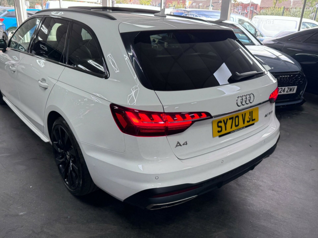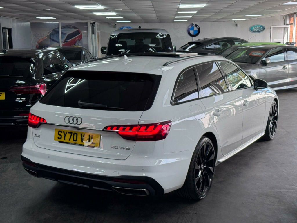 (70 REGISTRATION) AUDI A4 Avant 2.0 TFSI 40 S LINE S-TRONIC EURO 6| NEW SHAPE | VIRTUAL DASH| PANORAMIC ROOF| UPGRADED 19” ALLOYS| SATNAV| DYNAMIC INDICATORS | HALF LEATHER INTERIOR | HEATED SEATS| REVERSE CAMERA| DRIVER ASSISTANCE TOUR PACKAGE| PARKING SENSORS| JUST BEEN SERVICED | AUDI SERVICE HISTORY | 12 MONTHS MOT| 1 FORMER KEEPER|PRIVACY GLASS| BLACK EDITION STYLING| DAB RADIO | KEYLESS GO/START| FINANCE ARRANGED £0 DEPOSIT NEEDED| PART EXCHANGE WELCOME | LOW MONTHLY PAYMENTS | APR RATES FROM 9.9 | LOW MONTHLY PAYMENTS |PCP AND HP FINANCE DEALS AVAILABLE | RAC APPROVED DEALERSHIP| HIGHLY RATED FOR OUR CUSTOMER SERVICE OVER 300 5 STAR REVIEWS ON AUTOTRADER | Please note: The above advert has been carefully written by our expert sales team to provide precise information. unfortunately some errors may occur. Please contact a sales person if you have any queries. ||. 19in Alloy Wheels - 8.5J 5-Arm Torsio Design, 2 USB Charging Ports, 3-spoke Leather High Multi-function Sport Steering Wheel with Grips in Perforated Leather with S Badging, 4-Way Electric Lumbar Support, 6-Airbag System, 8 Passive Loudspeakers, Aluminium Roof Rails, Anti Theft Locking Wheel Bolts, Anti-Theft Alarm, Audi Connect Infotainment Services (36 Month Subscription From New), Audi Connect Safety and Service, Audi Drive Select, Audi Smartphone Interface, Audi Virtual Cockpit, Auto-Dimming Rear-View Mirror, Automatic Start-Stop with Coasting Functionality and Efficiency Programme, Bluetooth Interface, Body Coloured Door Mirrors, Body Coloured Side Sill Trims, Cloth Headlining in Black, Contrast Stitching on Seats - Steering Wheel and Gear-Lever Gaiter, Cruise Control System with Speed Limiter, DAB Digital Radio Reception, Deluxe 3-Zone Electronic Climate Control, Door Handles - Body Coloured, Door Mirrors - Folding with Auto-Dimming, ESC - Electronic Stabilisation Control inc ABS - ASR and EDL, Electric Load Area Cover, Electric Windows - Front, Electromechanical Power Steering, Email - Calendar and Text Messages can be Displayed on your Vehicles MMI, First Aid Kit and Warning Triangle, Front Centre Armrest, Front Spoiler Lip in Body Colour, Front Sports Seats, Gear Knob - Perforated Leather Black, Headlights - High-Beam Assist, Heated Front Seats, High Gloss Package, Hill Hold Assist, ISOFIX Child Seat Mounting and Top Tether, Illuminated Door Sill Trims with S Logo, Inlays - Matt Brushed Aluminium, Keyless Go, LED Daytime Running Lights, LED Headlights with LED Rear Lights and Dynamic Rear Indicators, LED Interior Lighting Pack, Light and Rain Sensor, MMI Navigation Plus including MMI Touch, Manual Seat Adjustment, Multi Collision Brake Assist, Parking System Plus - Front and Rear Sensors, Pedals and Footrest - Stainless Steel, Pop-Up Bonnet for Pedestrian Protection, Power Operated Tailgate, Pre-Sense City, Privacy Glass, Radiator Grille with Honeycomb Structure in Grained Matt Black, Rear-View Camera, S Line Badges on Front Wings, S Line Rear Diffuser in Matt Titanium Black with Trim Strip in Matt Aluminium Silver, S line Front and Rear Bumpers and Side Skirts, S line Roof Edge Spoiler, Seat Belt Monitoring, Side Air Inlets in Grained Matt Black with Inlay in Matt Aluminium Silver, Split-Folding Rear Seat Bench in 3 Parts - 40-20-40 with Rear Centre Armrest, Sport Suspension, Steering Column - Rake and Reach Adjustment, Tailpipe Trims in Matt Aluminium Silver, Tool Kit, Tyre Repair Kit, Voice Control, Windscreen with Acoustic Glazing, 19in Alloy Wheels - 8.5J 10-Spoke Turbine Design in Platinum Look, Panoramic Glass Sunroof.