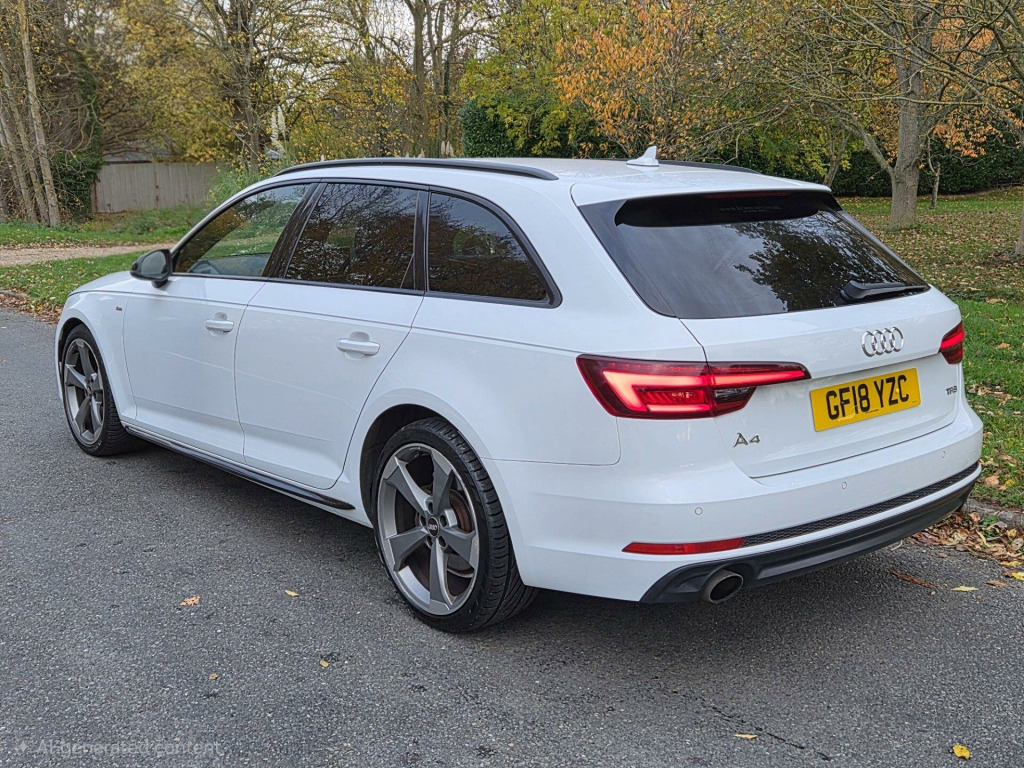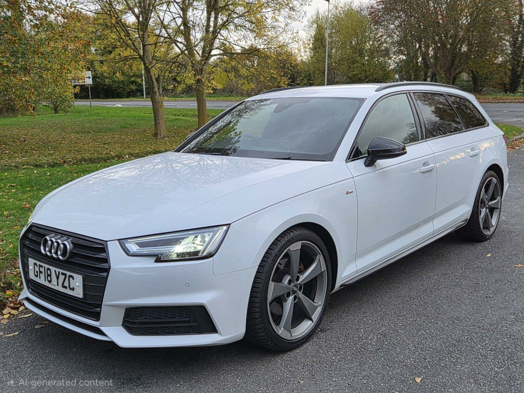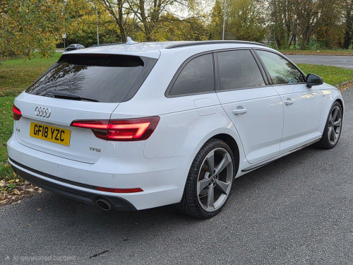 £500 OFF EVERYTHING IN DECEMBER! REDUCED FROM £14750 TO JUST £14250 This 2018 Audi A4 Avant TFSI Black Edition boasts a full service history, with its last service completed on 16 August 2024 at 65,596 miles and a fresh service before sale, and a clear vehicle history check, offering peace of mind. This stylish estate car features the desirable Black Edition trim and is powered by a 2.0 litre petrol engine, meeting Euro 6 emissions standards. Notable features include striking LED headlights with dynamic rear indicators, Andriod auto/Apple carplay, wireless charging, heated seats, cruise control, a Parking System Plus with front and rear sensors for effortless manoeuvring, and a Light and Rain Sensor that automatically adjusts headlights. Inside, you'll find the comfort of heated front seats and Deluxe 3-Zone Electronic Climate Control for a perfect cabin temperature.The Audi A4 Avant TFSI Black Edition offers impressive performance and efficiency. Its fuel economy is a highlight, achieving up to 49 miles per gallon, which is better than many similar vehicles. Furthermore, its low CO2 emissions contribute to a more environmentally conscious drive. For those who appreciate responsive power, this model accelerates from 0 to 60 miles per hour in just 7.2 seconds, demonstrating a strong performance that sets it apart.. 19in Alloy Wheels - 5-Arm Rotor Matt Titanium Look - Diamond Cut, 4-Way Electric Lumbar Support, 6-Airbag System, Anti Theft Locking Wheel Bolts, Anti-Theft Alarm, Audi Connect - 3 Month Trial, Audi Connect Safety and Service - e-call, Audi Drive Select, Audi Smartphone Interface, Audi Sound System, Auto-Dimming Rear-View Mirror, Black Styling Package, Bluetooth Interface, CD Drive, Chrome-Plated Trims for Exhaust System, Cloth Headlining in Black, Cruise Control System with Freewheeling Capability and Speed Limiter, DAB Digital Radio, Deluxe 3-Zone Electronic Climate Control, Door Handles - Body Coloured, Door Mirrors - Electrically Adjustable and Heated with Built-in LED Indicators, Driver Information System - 7in Colour Display, ESC - Electronic Stabilisation Control inc ABS - ASR and EDL, Electric Load Area Cover, Electric Windows - Front and Rear, Electromechanical Power Steering, First Aid Kit and Warning Triangle, Flat Bottomed 3-Spoke Leather High Multi-Function Steering Wheel, Front Centre Armrest, Gear Lever Knob in Black Perforated Leather, Heated Front Seats, High Gloss Package, ISOFIX Child Seat Mounting and Top Tether, Illuminated Door Sill Trims with S Logo, Inlays - Piano Finish - Black, Keyless Go, LED Headlights with LED Rear Lights and Dynamic Rear Indicators, LED Interior Light Package, Light and Rain Sensor, MMI Navigation - SD Card Based, Manual Height Adjustment for Front Seats, Multi Collision Brake Assist, Parking System Plus, Pedals and Footrest - Stainless Steel, Pop-Up Bonnet for Pedestrian Protection, Power Operated Tailgate, Pre-Sense City, Privacy Glass and Front Acoustic Glazing, Rear Diffuser in Twilight Grey Matt, Rear Grille - Black Grained, Remote Central Locking, S Line Badges on Front Wings, S line Front and Rear Bumpers and Side Skirts, Seat Belt Monitoring, Space Saver Spare Wheel, Split-Folding Rear Seat Bench in 3 Parts - 40-20-40 with Rear Centre Armrest, Sport Suspension, Sun Visors - with Vanity Mirror, Tool Kit and Car Jack, Towbar Preparation, Two USB Charging Ports, Tyre Pressure Warning Light, Voice Control, Windscreen with Acoustic Glazing. Full service history