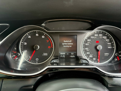 This 2015 Audi A4 Avant TFSI Black Edition boasts a clear vehicle history, offering peace of mind for its next owner. This stylish estate car features a powerful 2.0 litre petrol engine paired with a four wheel drive system, ensuring confident handling in various conditions. As a Euro 6 compliant vehicle, it meets modern emissions standards. The Black Edition trim adds a distinctive look, complemented by desirable features such as rear parking sensors with parking assistance, electronic three zone climate control, and automatic headlights activated by a light sensor. Inside, you can enjoy the premium Bang and Olufsen sound system and seamless mobile telephone preparation via the Bluetooth interface.The performance of this Audi A4 Avant is truly impressive, with an acceleration of 0 to 62 miles per hour achieved in just 6.5 seconds. This quick acceleration indicates a superior driving experience compared to many other vehicles in its class. The combination of its potent engine, advanced four wheel drive, and the refined Black Edition specification makes this A4 Avant a compelling choice for those seeking both practicality and performance. v power socket, 12v power socket - luggage compartment, 19in alloy wheels - 5-arm rotor design titanium finish, 6.5in display screen, abs - anti-lock braking system, ami - audi music interface, acoustic windscreen, airbags - driver, airbags - front passenger, airbags - front side, airbags - head system, alarm - thatcham category 1, audi sound system, auto-dimming rear-view mirror, automatic wipers with rain sensor, bang and olufsen sound system, black styling package, car jack, climate control - electronic 3-zone, cloth headlining in black, colour drivers information system - dis, concert radio - mp3/cd player, cruise control, dab digital radio, daytime running lights, door mirrors - electrically adjustable and heated, door sill trims - aluminium optic, esp - electronic stability programme, electric windows - front and rear, electrically adjustable 4-way lumbar support, electromechanical parking brake, electromechanical power steering, exterior aluminium package, first aid kit, front centre armrest, front fog lights, front passenger airbag deactivation switch, front and rear floor mats, halogen headlights, headlights - coming-leaving home function, headlights - light sensor, headlights - range adjustment, isofix child seat preparation front and rear, inlays - piano finish - black, interior chrome package, mobile telephone preparation - bluetooth interface, power operated tailgate, privacy glass, rear armrest, rear parking sensors, remote central locking, rest recommendation system, space saver spare wheel, split-folding rear seats, sport suspension, steering wheel - 3-spoke leather-multifunction-flat bottomed-shift paddles, steering wheel - height and reach adjustable, steering wheel - multi-function, tool kit, warning triangle