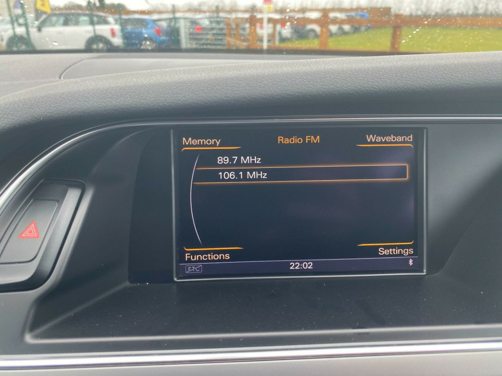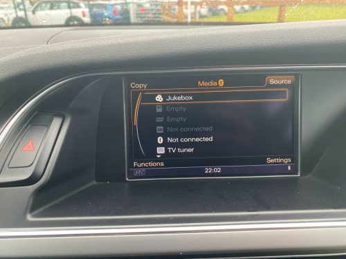 . 12V Power Socket, 12V Power Socket - Luggage Compartment, 18in Alloy Wheels - 5-Twin Spoke Design, 6.5in Display Screen, ABS - Anti-Lock Braking System, Acoustic Windscreen, Airbags - Driver, Airbags - Front Passenger, Airbags - Front Side, Airbags - Head System, Alarm - Thatcham Category 1, Audi Sound System, Auto-Dimming Rear-View Mirror, Automatic Wipers with Rain Sensor, Bumpers - Front and Rear - S Line Design, Car Jack, Climate Control - Electronic 3-Zone, Cloth Headlining in Black, Colour Drivers Information System - DIS, Concert Radio - MP3/CD Player, Cruise Control, DAB Digital Radio, Door Mirrors - Electrically Adjustable and Heated, Door Sill Trims with S Line Logo, ESP - Electronic Stability Programme, Electric Windows - Front and Rear, Electrically Adjustable 4-Way Lumbar Support, Electromechanical Parking Brake, Electromechanical Power Steering, Exterior Aluminium Package, First Aid Kit, Front Centre Armrest, Front Fog Lights, Front Passenger Airbag Deactivation Switch, Front and Rear Floor Mats, Gear Knob - Perforated Leather, Headlights - Bi-Xenon Plus, Headlights - Coming-Leaving Home Function, Headlights - Light Sensor, Headlights Washers, ISOFIX Child Seat Preparation Front and Rear, Inlays - Matt Brushed Aluminium, Interior Chrome Package, LED Daytime Running Lights, LED Tail Lights, Mobile Telephone Preparation - Bluetooth Interface, Power Operated Tailgate, Radiator Grille - Single Frame - with High Gloss Black Horizontal Bars, Rear Armrest, Rear Parking Sensors, Remote Central Locking, Rest Recommendation System, Roof Rails in Bright Finish, S Line Badges on Wings, S Line Side Skirts, Side Radiator Grilles in Black Honeycomb Structure, Space Saver Spare Wheel, Split-Folding Rear Seats, Spoiler - Roof, Sport Suspension, Steering Wheel - 3-Spoke Leather-Multi-Function-Shift Paddles, Steering Wheel - Height and Reach Adjustable, Steering Wheel - Multi-function, Styling Package - S line Exterior, Tool Kit, Warning Triangle.