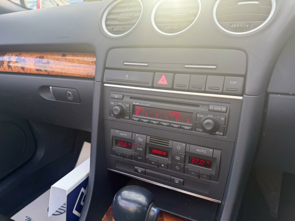 Allwood of Sandridge are still running there PX sale and next up is the nice driving Audi A4 Cabriolet 2.0 TFSI Multitronic edition, ideal for anyone looking for a value spring convertible in automatic. Recorded as Cat N with light panel damage. MOT through till the end of August 2026. The car benefits from a full leather interior electric seats and mirrors, Audi concert Hi-Fi system, leather multi functional control steering wheel and much much more. Starts on the button. Viewing is by appointment on 01727 641 333 and whats app and messaging on 01727 641 333 justable steering column/wheel, air bag driver, air bag passenger, air bag side, alarm, alloy wheels (16in), anti-lock brakes, armrest, central door locking, climate control, computer (driver information system), electric windows (front/rear), electronic stability programme, front fog lights, head restraints, in car entertainment (radio/cd), mirrors external, power socket, power-assisted steering, seat height adjustment, spare wheel (full size), speakers, steering wheel mounted controls (gears), upholstery cloth