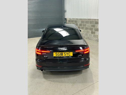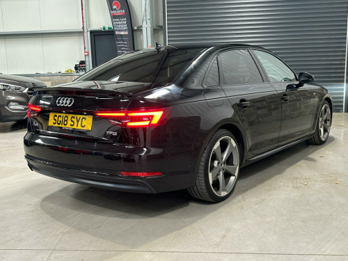 GB Auto-Care presents this stunning Audi A4 1.4 TFSI Black Edition Euro 6 (s/s) 4dr. Boasting huge spec and sportiness! Comes with a fresh 12 months MOT, vehicle will go through our onsite workshop for a full Pre sale Mechanical Inspection and a full service, will leave us with a 6 month premium Warranty with nationwide breakdown included and with options to extend. FINANCE AVAILABLE NATIONWIDE HOME DELIVERY PART X WELCOMEThis 2018 Audi A4 TFSI Black Edition boasts a comprehensive service history, with its last service completed on 18th September 2025 at 109,996 miles, and comes with a clear vehicle history check. This stylish saloon is powered by an efficient 1.4 litre petrol engine, meeting Euro 6 emissions standards. The Black Edition trim enhances its appeal, and notable features include the Technology Pack with Bluetooth and wireless phone charging, Audi Entertainment Mobile, and advanced Matrix LED headlights with dynamic indicators. For added convenience and safety, it also benefits from Hill Hold Assist and a Bluetooth interface.This Audi A4 is presented with a 6 month warranty and will be supplied with 12 months MOT for your peace of mind. Its fuel economy is a strong point, achieving an impressive 51 miles per gallon, which indicates it is more economical than many similar vehicles. Furthermore, its low insurance group and low CO2 emissions highlight its cost effectiveness and environmental consideration compared to other cars in its class. in alloy wheels - 5-arm rotor matt titanium look - diamond cut, 4-way electric lumbar support, 6-airbag system, anti theft locking wheel bolts, anti-theft alarm, audi connect - 3 month trial, audi connect safety and service - e-call, audi drive select, audi smartphone interface, audi sound system, auto-dimming rear-view mirror, black styling package, bluetooth interface, cd drive, chrome-plated trims for exhaust system, cloth headlining in black, cruise control with speed limiter, dab digital radio, deluxe 3-zone electronic climate control, door handles - body coloured, door mirrors - electrically adjustable and heated with built-in led indicators, driver information system - 7in colour display, esc - electronic stabilisation control inc abs - asr and edl, electric boot lid release, electric windows - front and rear, electromechanical power steering, first aid kit and warning triangle, flat bottomed 3-spoke leather high multi-function steering wheel, front centre armrest, gear lever knob in black perforated leather, heated front seats, high gloss package, isofix child seat mounting and top tether, illuminated door sill trims with s logo, inlays - piano finish - black, keyless go, led headlights with led rear lights and dynamic rear indicators, led interior light package, light and rain sensor, mmi navigation - sd card based, manual height adjustment for front seats, multi collision brake assist, parking system plus, pedals and footrest - stainless steel, pop-up bonnet for pedestrian protection, pre-sense city, privacy glass and front acoustic glazing, rear diffuser in twilight grey matt, rear grille - black grained, remote central locking, s line badges on front wings, s line front and rear bumpers and side skirts, seat belt monitoring, space saver spare wheel, split-folding rear seat bench in 3 parts - 40-20-40 with rear centre armrest, sport suspension, sun visors - with vanity mirror, tool kit and car jack, towbar preparation, two usb charging ports, tyre pressure warning light, voice control, windscreen with acoustic glazing, audi entertainment mobile, technology pack, hill hold assist, matrix led headlights with led rear lights and dynamic front and rear indicators, 18in alloy wheels - 10-y-spoke design gloss black-diamond cut finish, alcantara-leather - sport seats - s embossed logo - black, alcantara-leather - sport seats - s embossed logo - rotor grey