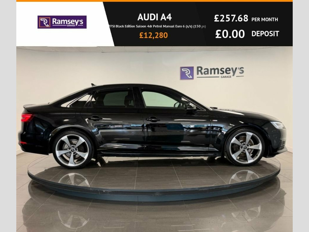 Audi A4 1.4 TFSI Black Edition Saloon 4dr | Petrol | Manual | 150 PS | Euro 6 (s/s) | ULEZ Compliant Engine: 1.4L TFSI Petrol Power: 150 PS Transmission: 6-Speed Manual Drivetrain: Front-Wheel Drive Emissions Standard: Euro 6 (s/s) – ULEZ Compliant This Audi A4 Black Edition blends executive comfort with sporty style. With a refined 1.4 TFSI engine, sharp handling, and bold Black Edition styling upgrades, it's an excellent choice for those seeking a premium saloon with everyday usability and flair. Black Edition Highlights: 19" Audi Sport alloy wheels Black styling package (grille, window trims, mirror caps) Privacy glass Flat-bottomed leather steering wheel LED headlights and rear lights Audi Drive Select Rear parking sensors Cruise control and speed limiter MMI infotainment system with navigation DAB radio, Bluetooth, USB connectivity Dual-zone climate control Sports seats with part-leather trim Euro 6 compliant – ULEZ friendly Vehicle Details: Registration: RF67RMU Year: 2018 Mileage: 70026 Colour: BLACK Location: CO. DURHAM. ONLY 5 MINS FROM THE A1 Before any car leaves our showroom, it's thoroughly inspected, serviced, and tested by our expert technicians. We check all major systems, replace worn parts, and carry out a final road test to ensure reliability and safety. Each vehicle is then professionally cleaned and detailed, with all paperwork and history verified. All of our vehicles are delivered with a 12 month MOT along 19in Alloy Wheels - 5-Arm Rotor Matt Tit, 4-Way Electric Lumbar Support, 6-Airbag System, Anti Theft Locking Wheel Bolts, Anti-Theft Alarm, Audi Connect - 3 Month Trial, Audi Connect Safety and Service - e-call, Audi Drive Select, Audi Smartphone Interface, Audi Sound System, Auto-Dimming Rear-View Mirror, Black Styling Package, Bluetooth Interface, CD Drive, Chrome-Plated Trims for Exhaust System, Cloth Headlining in Black, Cruise Control with Speed Limiter, DAB Digital Radio, Deluxe 3-Zone Electronic Climate Control, Door Handles - Body Coloured, Door Mirrors - Electrically Adjustable a, Driver Information System - 7in Colour D, Electric Boot Lid Release, Electric Windows - Front and Rear,