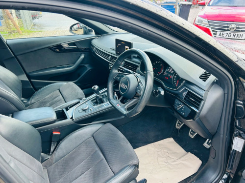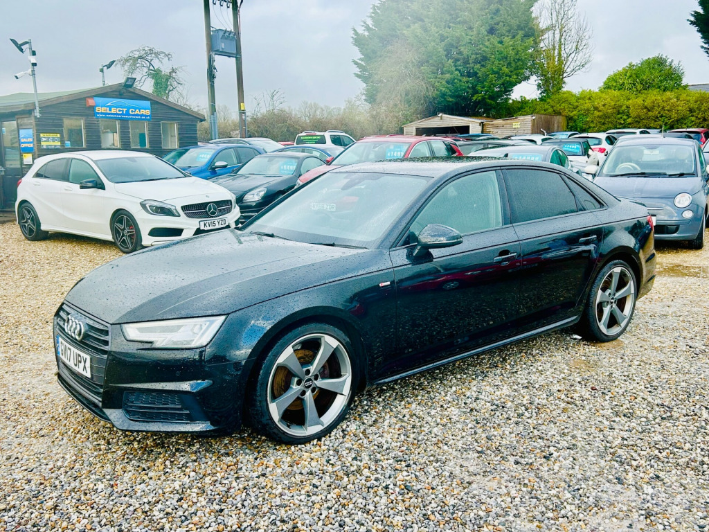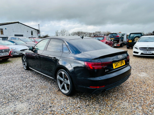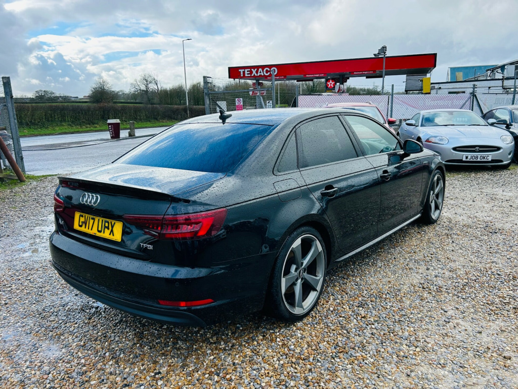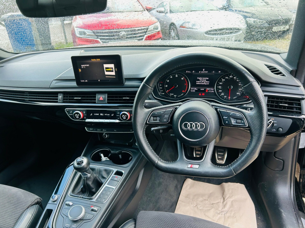 2017 Audi A4 Black Edition Euro 6- Has covered just 91k with great history - Will be supplied with 12 months Mot- Heated seats - Finance Available - Part Exchange Welcome in alloy wheels - 5-arm rotor matt titanium look - diamond cut, anti theft locking wheel bolts, black styling package, chrome-plated trims for exhaust system, door handles - body coloured, door mirrors - electrically adjustable and heated with built-in led indicators, electric windows - front and rear, high gloss package, privacy glass and front acoustic glazing, rear diffuser in twilight grey matt, rear grille - black grained, s line badges on front wings, s line front and rear bumpers and side skirts, space saver spare wheel, windscreen with acoustic glazing, 4-way electric lumbar support, auto-dimming rear-view mirror, cloth headlining in black, deluxe 3-zone electronic climate control, electric boot lid release, flat bottomed 3-spoke leather high multi-function steering wheel, front centre armrest, gear lever knob in black perforated leather, heated front seats, illuminated door sill trims with s logo, inlays - piano finish - black, keyless go, led interior light package, manual height adjustment for front seats, pedals and footrest - stainless steel, split-folding rear seat bench in 3 parts - 40-20-40 with rear centre armrest, sun visors - with vanity mirror, tool kit and car jack, 6-airbag system, anti-theft alarm, esc - electronic stabilisation control inc abs - asr and edl, first aid kit and warning triangle, isofix child seat mounting and top tether, multi collision brake assist, parking system plus, pop-up bonnet for pedestrian protection, pre-sense city, remote central locking, seat belt monitoring, audi connect - 3 month trial, audi connect safety and service - e-call, audi smartphone interface, audi sound system, bluetooth interface, cd drive, dab digital radio, driver information system - 7in colour display, mmi navigation - sd card based, towbar preparation, two usb charging ports, audi drive select, cruise control with speed limiter, electromechanical power steering, sport suspension, tyre pressure warning light, voice control, led headlights with led rear lights and dynamic rear indicators, light and rain sensor